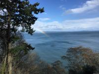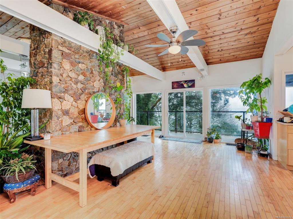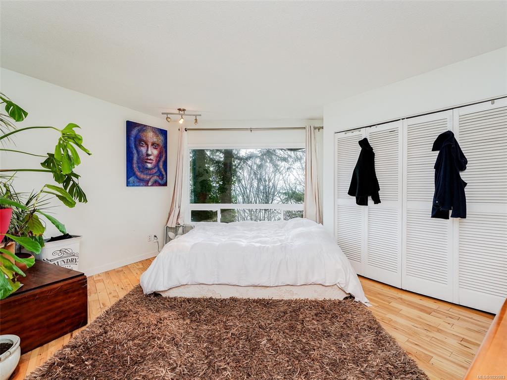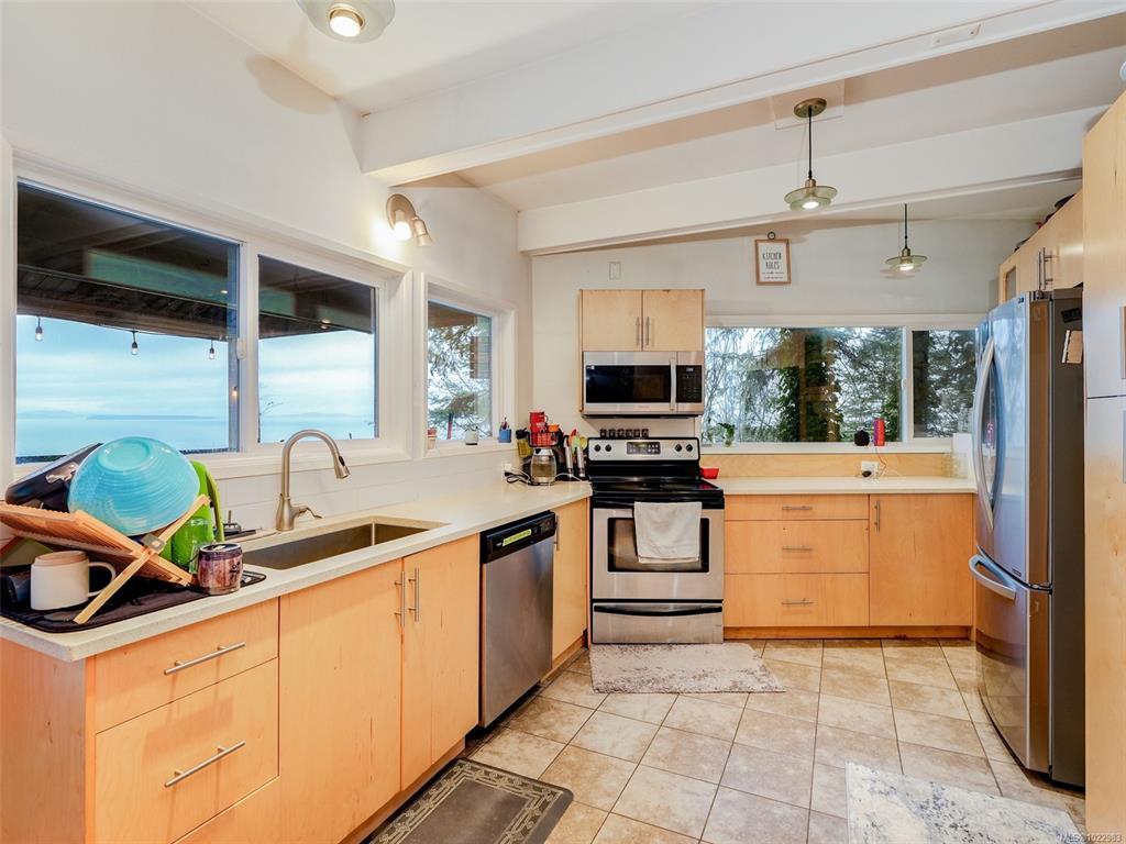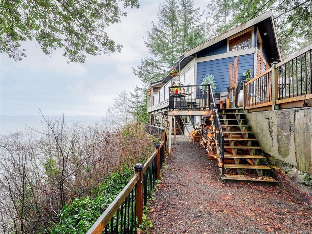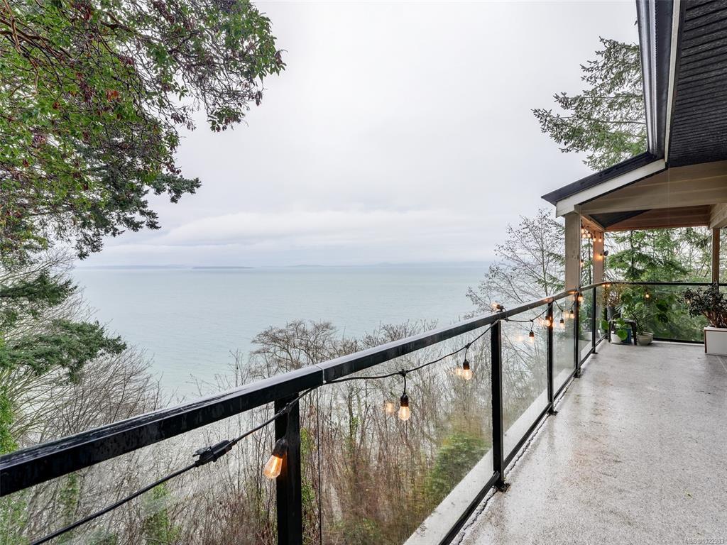 SPECTACULAR VIEWS !! Sitting on top of a high bank waterfront this home has views of the Haro Straight, Mount Baker, the San Juan Islands, and on a clear night you can see the lights on Grouse Mountain. This 4 bed 2 bath home can also serve as a 2 bed one bath suite downstairs with separate entrance. This is a rare property as it has at least 3 times the parking then the next largest lot on the Mount Doug Cordova Bay Rd. section, and is the last home entering an old growth forest! The main floor has a foyer entrance, vaulted living room ceilings, a beautiful rock fireplace, dining room and an updated kitchen......with ocean views. Downstairs has 2 bedrooms and 1 bath, living room, small kitchen.....and ocean views! Come and see one of the nicest areas in the capital.