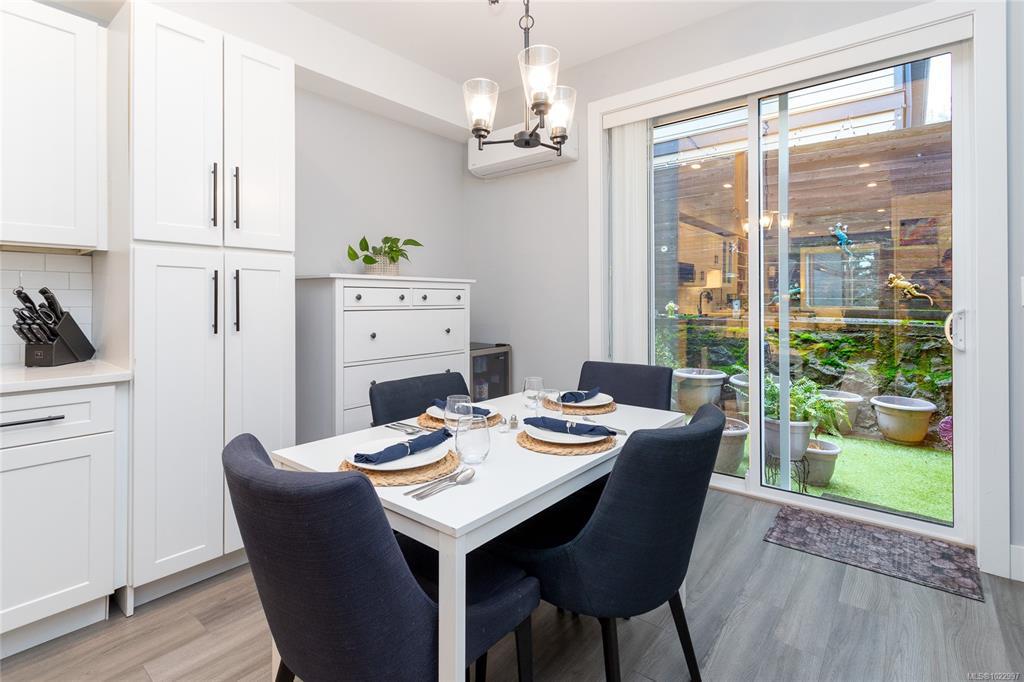 Popular Turnstone Ridge Development in the Happy Valley area of South Langford. 3 Story Modern Townhouse offering 2 spacious Bedrooms & 2 Bathrooms. You will Love the Open Living Concept main floor with Designer Kitchen & Quartz Counters, Stainless Appliances, Gas Fireplace, Gas On Demand Hot Water, Gas Cooktop on Oven, Gas Line to Patio for BBQ. Updated Ductless Heat Pump for Cool Summers and Warm Winters. This unit will impress with its Quality Finishes, includes Laminate Flooring, Ceramic Tiles, Luxury Carpets, Closet Organizers, some updated hardware and fixtures. Large Tandem Double Car Garage with roughed in EV Charger, and extra storage! This unit has a Private Rear Patio off the Kitchen. Located a short walking distance to Happy Valley Elementary and the Galloping Goose Trail. 10 minutes to Belmont Market and Royal Bay. 2-5-10 New Home Warranty.