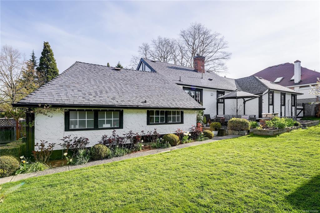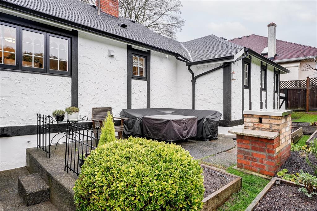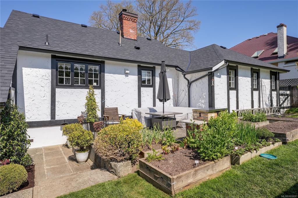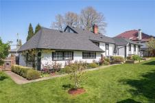 Large front verandah adds to the charm in this well built tudor style 3 bedroom character home.Gleaming fir floors & wood windows with custom storm windows,to keep the character & efficiency.The cozy fireplace & wall sconces add to the ambiance of this home.Buyer could assume established licensed aesthetics studio with separate entrance or use as a suite, or family room.Great crawlspace for extra storage.Dutch door leads to expansive south facing patio area with outdoor barbecue & overlooks the private fully fenced back yard with shed for your tools.Numerous garden beds & fruit trees.Part basement offers good workshop area separate from the rest of the house with a sink.Brand new roof with 35 year guarantee,200 amp electrical & many modern updates while maintaining the character!Recently paved driveway offers plenty of off street parking with room for the RV.Full irrigation system for lawn & gardens. Wonderful location close to schools & all amenities.Do not miss this immaculate home!