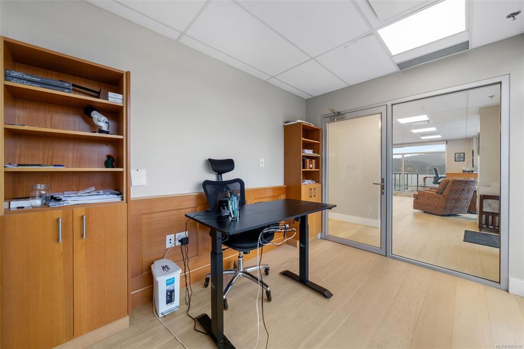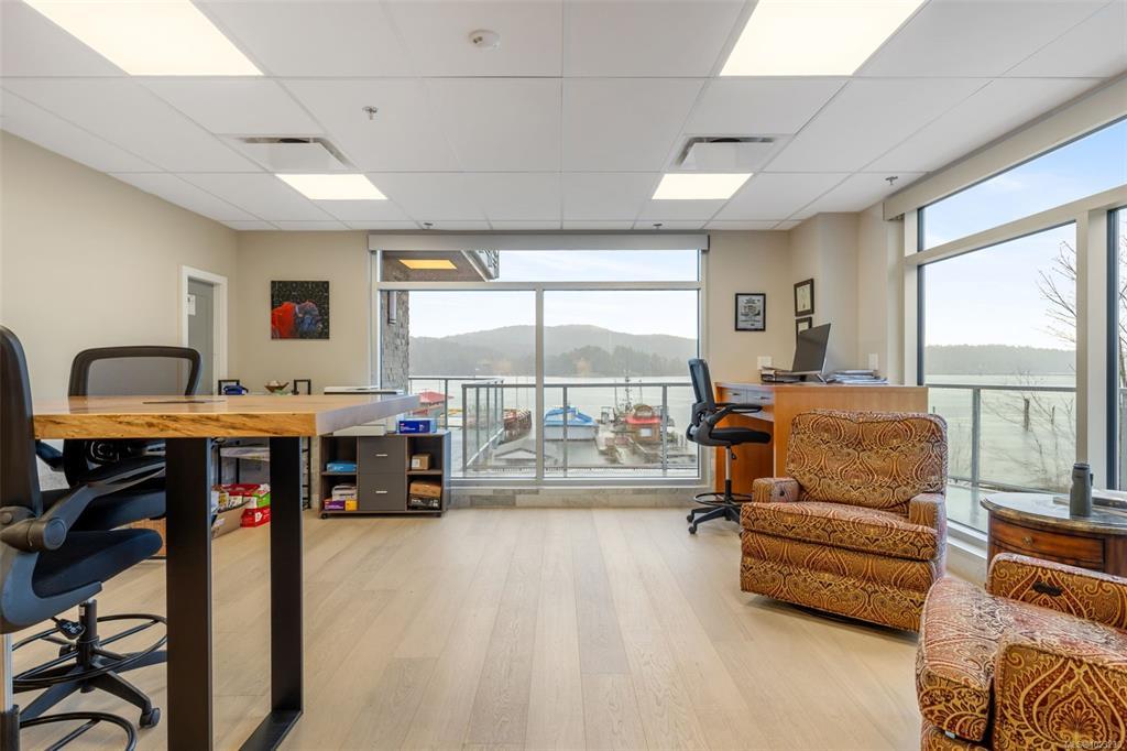 The professional space you’ve been dreaming of. This unique commercial office is designed to impress. Located on the Sooke Harbour, it offers unparalleled SE-facing ocean views with floor-to-ceiling windows that flood the space with natural light. Showcasing high-end finishes throughout, this office was custom-designed by the original developers of The Residences of Sooke Harbour, ensuring both quality & timeless appeal. The thoughtfully planned layout features nearly 700 sq ft of functional & flexible space, incl: an open-concept kitchen/office area, additional room with a door for added privacy & a 2-pcs bath. This wheelchair-friendly unit offers 2 entrances. The rear exit leads directly to your covered, designated parking stall, with additional visitor parking available. This is a space you’ll be proud to call your own, perfect for professionals seeking a premium, inspiring environment. Endless possibilities & an opportunity to invest in your future for less than the cost of rent!