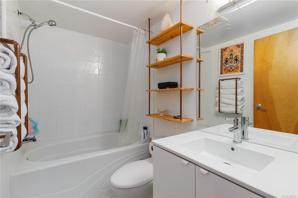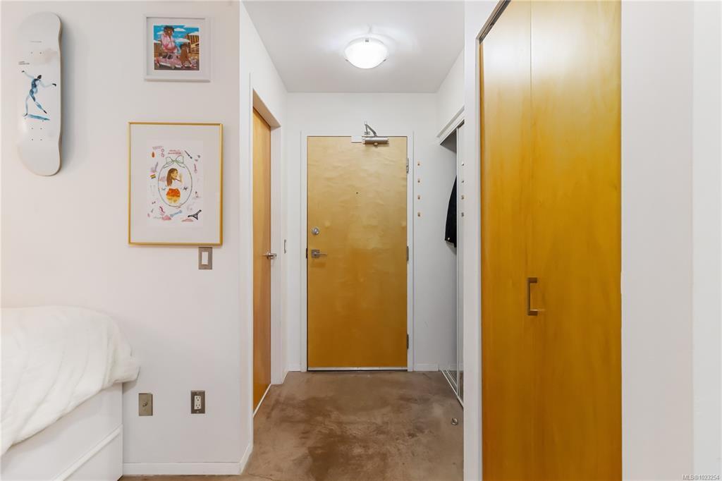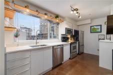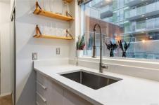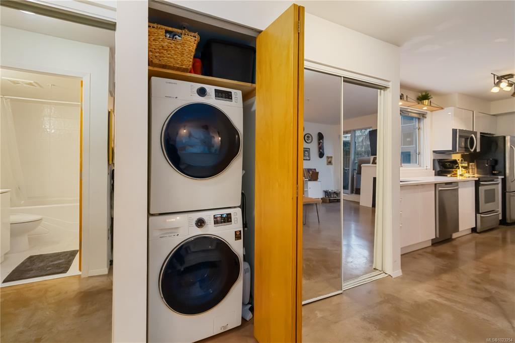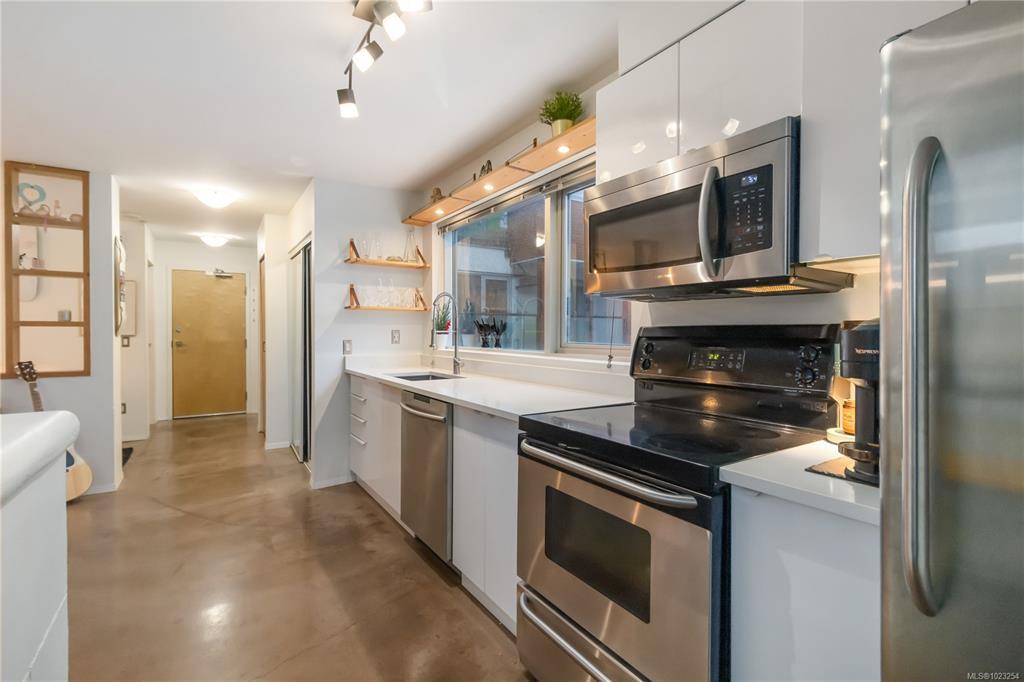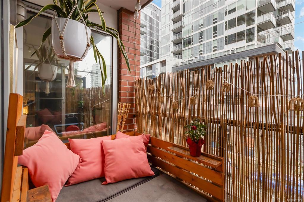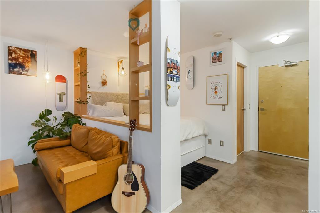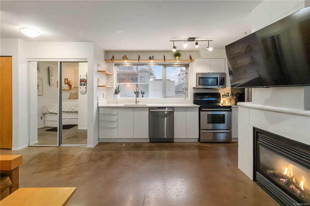 Unbeatable value in the heart of downtown Victoria, and truly one of a kind. This beautifully updated studio at The Urban stands apart with its modern, clean design and exceptional use of space. Quartz counters, stainless steel appliances, and a custom built-in desk with a window directly in front create a functional work-from-home or study space. Windows on two sides of the unit create a bright and open feel. The bathroom has been tastefully updated with a modern vanity and magazine-worthy finishes. In-suite laundry, secure bike storage, private locker, and communal rooftop patio. Cozy gas fireplace included in the strata fee keeps ownership costs low. Zoned live/work, pets welcome with no size restrictions. Home to Loft & Ladder Cafe, and steps to restaurants, groceries, gyms, and the Victoria Conservatory of Music. A perfect first home or stylish pied-a-terre, move-in ready and even better in person!
