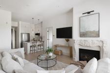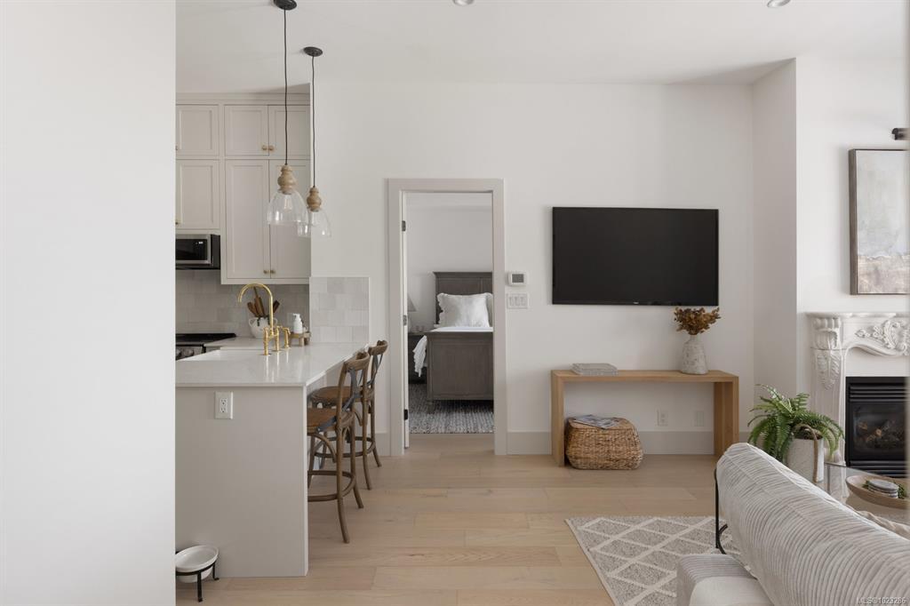 OPEN HOUSE SUNDAY January 25th 1-3pm!Beautifully updated top-floor residence in Ponds Landing, ideally located in the village at Bear Mountain Resort.This 2-bedroom plus den home blends modern elegance with timeless design, featuring curated finishes, designer lighting, and a soft neutral palette throughout.The airy 10-ft ceilings and open-concept layout frame a chef-inspired kitchen with a quartz waterfall island, custom wood cabinetry, farmhouse sink, and striking brass details.The inviting living room centers around a custom stone gas fireplace and opens to a covered patio with peaceful courtyard views.The primary suite offers patio access, walk-through closets, and a spa-like ensuite, while the second bedroom has a walk-in closet. The den presents a built-in desk for a flexible study or work from home space.Enjoy year-round climate control with an efficient heat pump. Complete with in-suite laundry, secure underground parking, and storage locker.