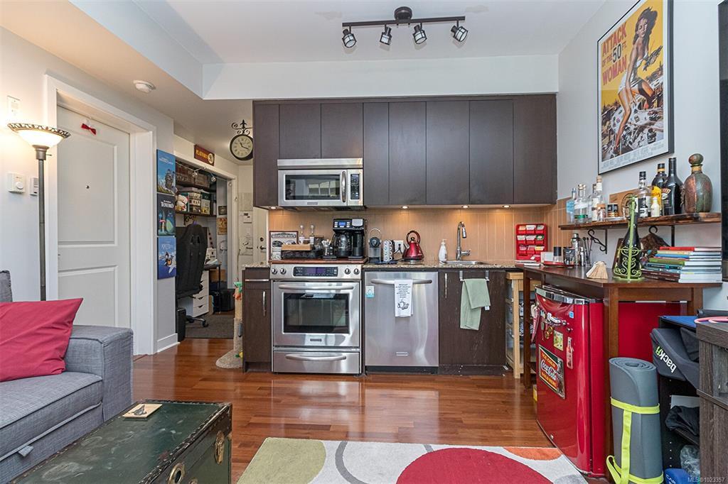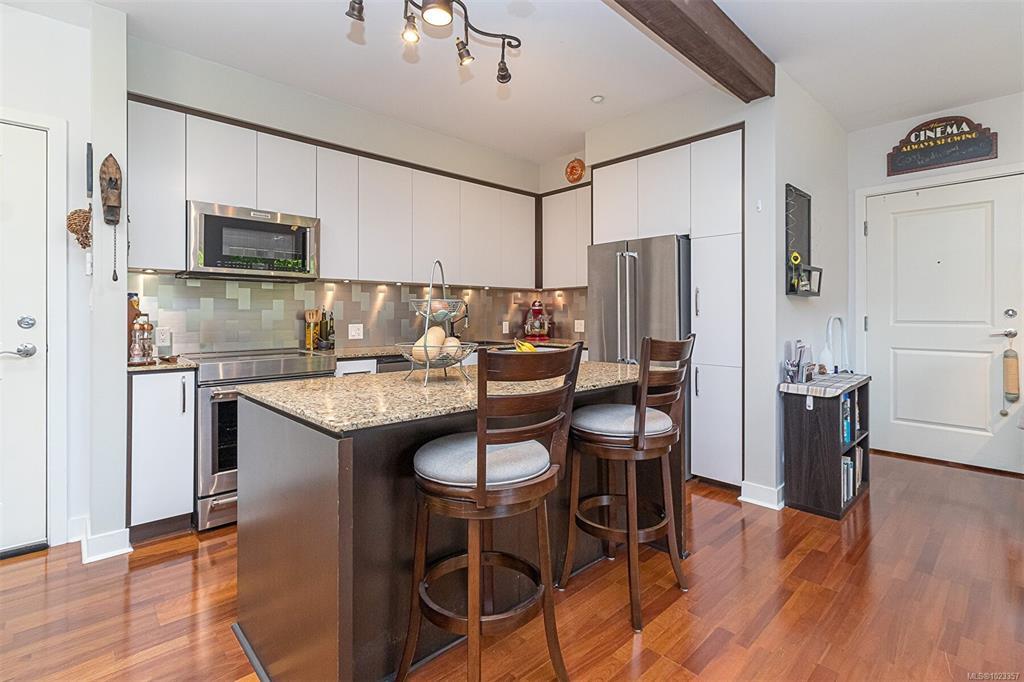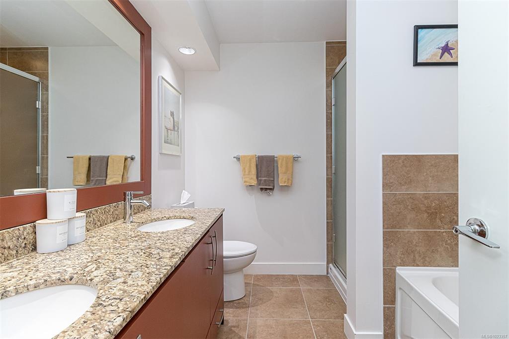 Open Sat Jan 17th 11:30-1pm. Condo w/Suite Potential. Located 20 mins from Downtown Victoria&5 mins from Millstream Village, Langford in the Prestigious Bear Mountain Golf Resort Village, these units are in a well-maintained building that has undergone many recent upgrades incl: new carpet in the hallways, fresh paint in the main hallways, all exterior trim&balcony railings. Located in the heart of the resort on the 9th hole, this well-kept 1 bed 1 bath condo w/ laundry has a spacious kitchen w/lots of cupboard space & classy granite sit-up island. Features a big living rm w/sizable dining room space, huge windows, electric fp&private south facing sundeck overlooking green space&the fairway. Bachelor suite w/separate entrance,own kitchen area, 4 pc bath&private south facing sundeck. (Note: no laundry in the bachelor suite (set up like a hotel room) electrical panel is in the main unit, each with its own underground parking spot, mailbox&storage locker.. Both units to be sold together.