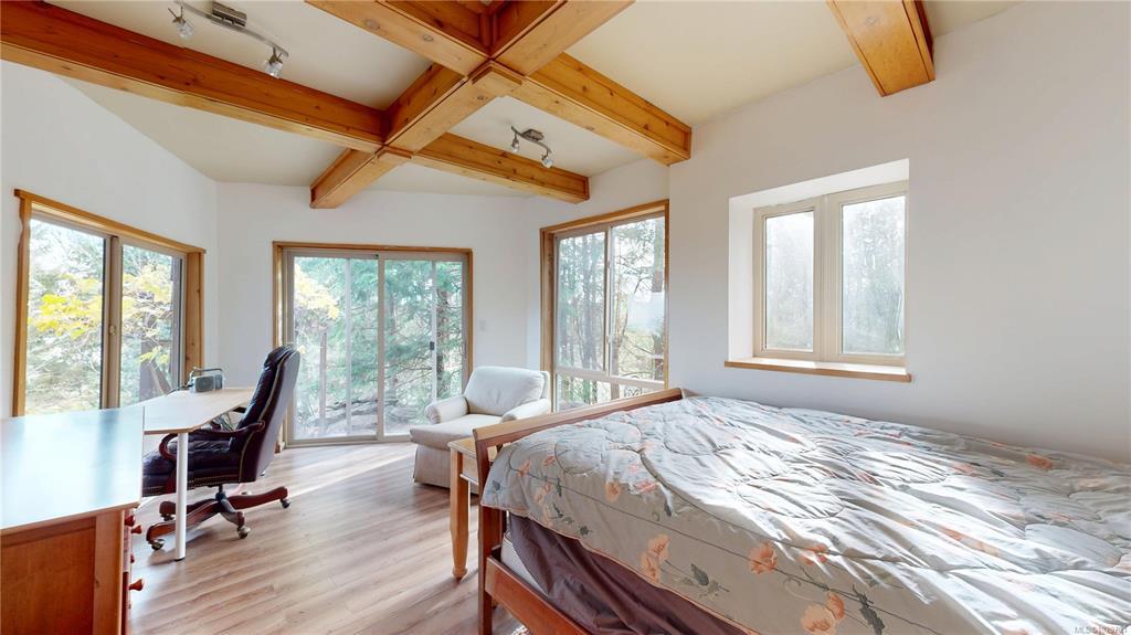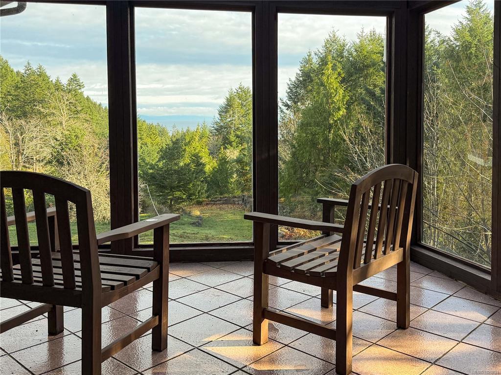 A winding driveway welcomes you to this picturesque and private ocean-and mountain-view setting on over 5 acres on Gabriola Island.This spacious wood-sided 4-bedroom,5-bathroom home offers a flexible layout suited to many lifestyles.The kitchen has been recently updated with new appliances,and the living room features vaulted ceilings with a woodstove insert.The main-level primary bedroom has a walk-in closet and 4-piece ensuite.Enjoy the covered deck—an ideal spot for morning coffee while watching the ferry pass by.Additional features include a metal roof, electric forced air heat pump, attached garage, and a lower level with its own exterior entrance,sauna,and hot tub area.The gently rolling property showcases beautiful rock walls,mature landscaping,and a detached studio perfect for an office or creative space.Water is supplied by a well and cistern with a treatment system in place.A great opportunity to add your own finishing touches in a serene setting.All info to be verified.
