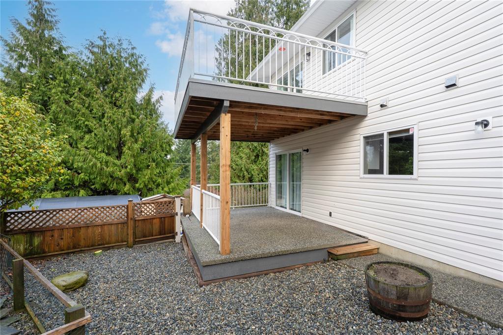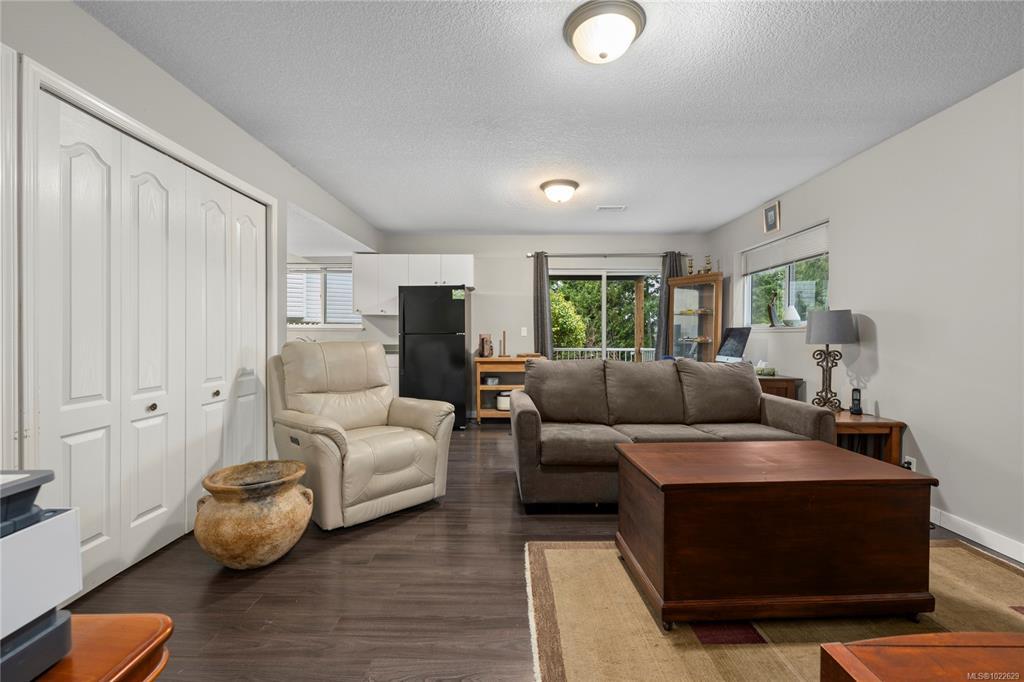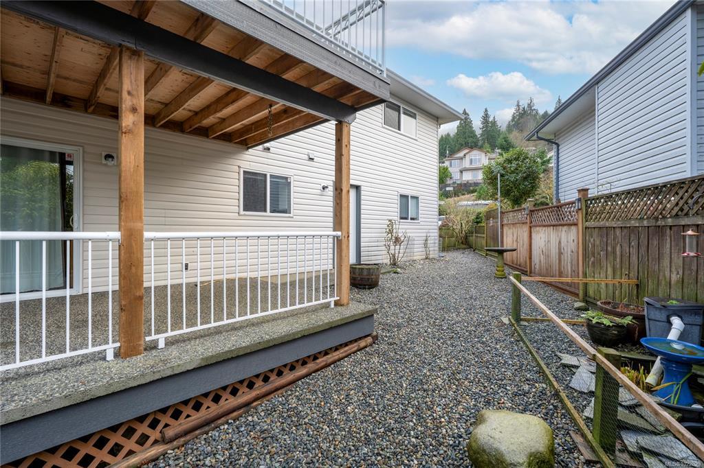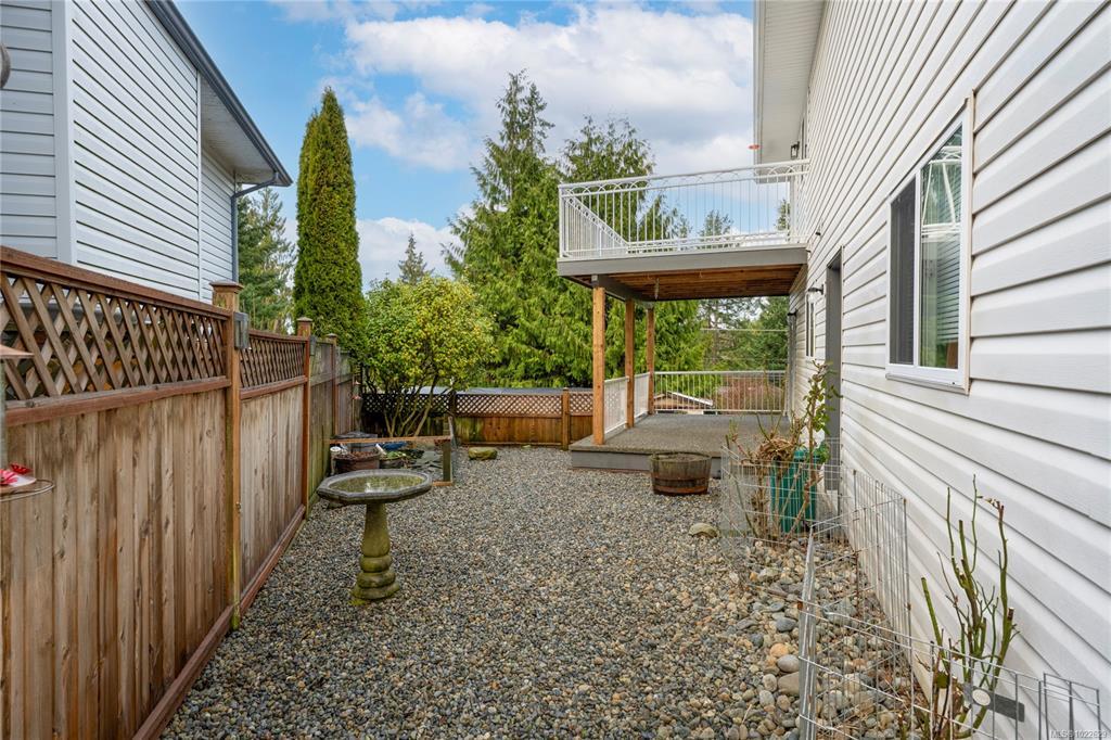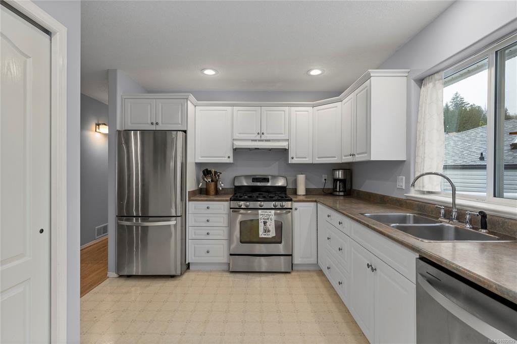 Located in desirable Hammond Bay, this well-maintained corner lot home at 5198 Dunn Place offers space, flexibility, and excellent value. The ground-level entry design features the main living area upstairs with a bright, open-concept living, dining, and kitchen layout. The kitchen is equipped with stainless steel appliances, a gas stove, and a large pantry, and opens onto a balcony overlooking the rear yard—perfect for relaxing or entertaining. The spacious primary bed includes a walk-in closet and a pocket door leading to the 4-piece main bath. Two additional generous beds complete the upper level. Downstairs offers an unauthorized 2-bed suite with an open, functional kitchen and living area, a 4-piece bath, and shared laundry—ideal for extended family/mortgage helper. Additional highlights include a 19x18 attached garage, new roof, two garden sheds, 5-zone irrigation system, and ample RV/boat parking. All of this in a quiet Hammond Bay location close to schools, parks, and beaches.