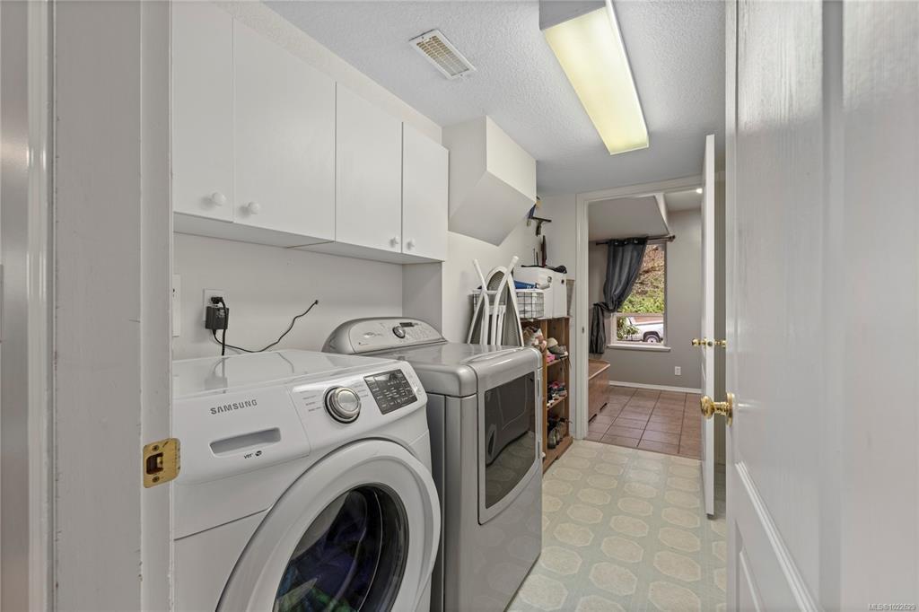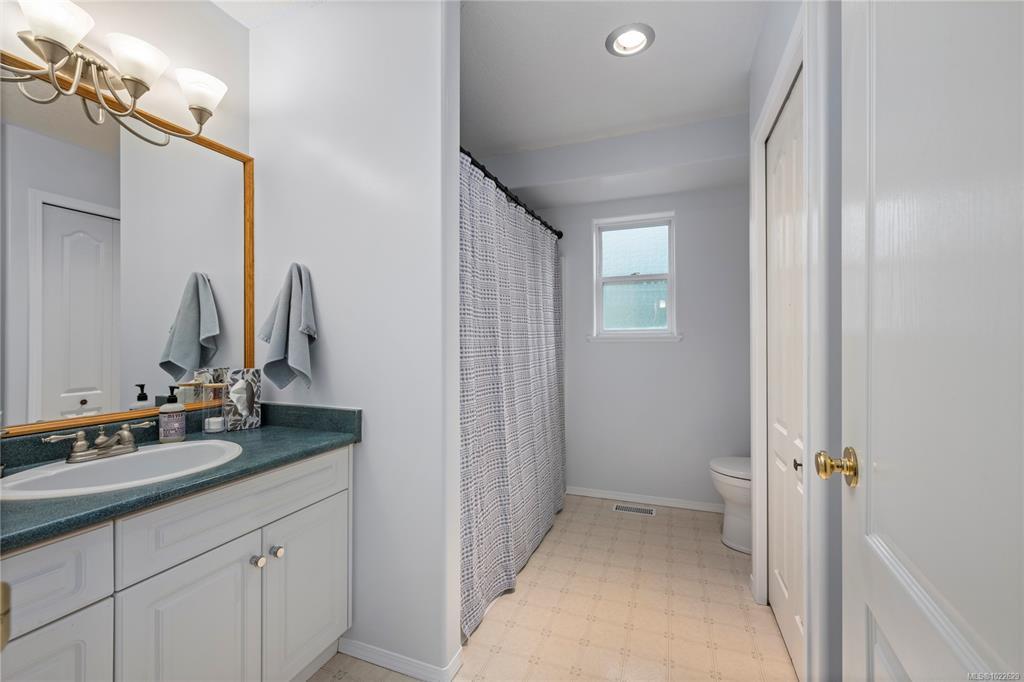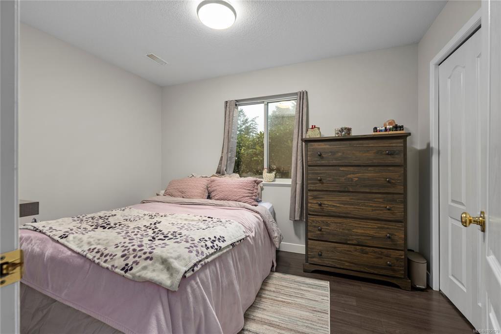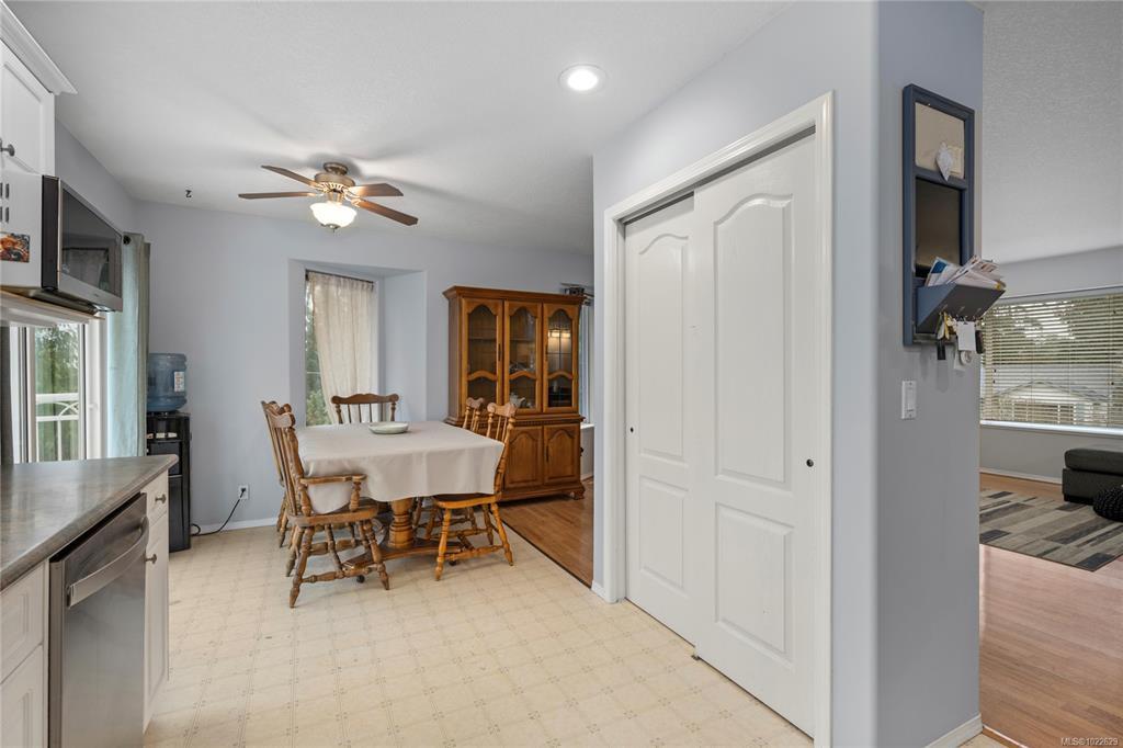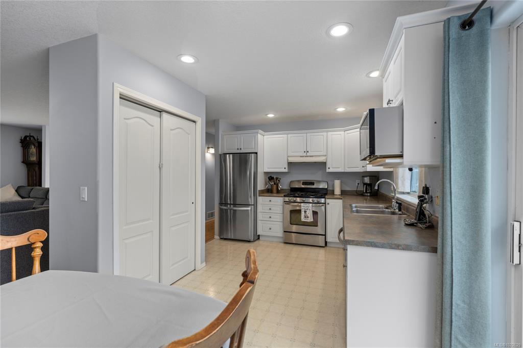 Located in desirable Hammond Bay, this well-maintained corner lot home at 5198 Dunn Place offers space, flexibility, and excellent value. The ground-level entry design features the main living area upstairs with a bright, open-concept living, dining, and kitchen layout. The kitchen is equipped with stainless steel appliances, a gas stove, and a large pantry, and opens onto a balcony overlooking the rear yard—perfect for relaxing or entertaining. The spacious primary bed includes a walk-in closet and a pocket door leading to the 4-piece main bath. Two additional generous beds complete the upper level. Downstairs offers an unauthorized 2-bed suite with an open, functional kitchen and living area, a 4-piece bath, and shared laundry—ideal for extended family/mortgage helper. Additional highlights include a 19x18 attached garage, new roof, two garden sheds, 5-zone irrigation system, and ample RV/boat parking. All of this in a quiet Hammond Bay location close to schools, parks, and beaches.
