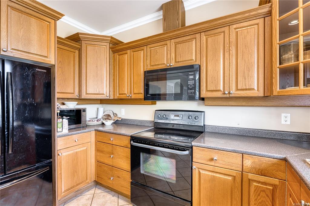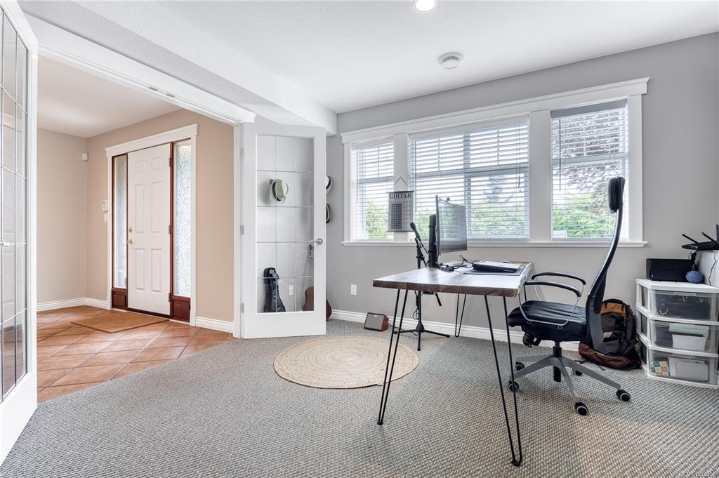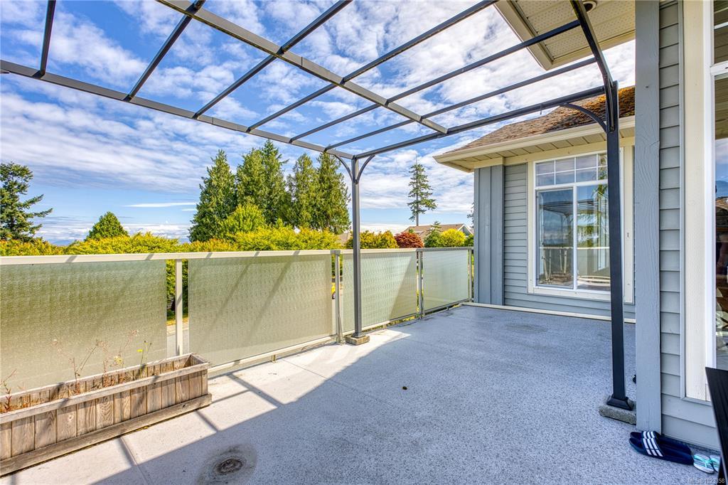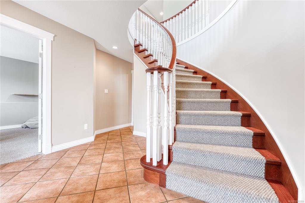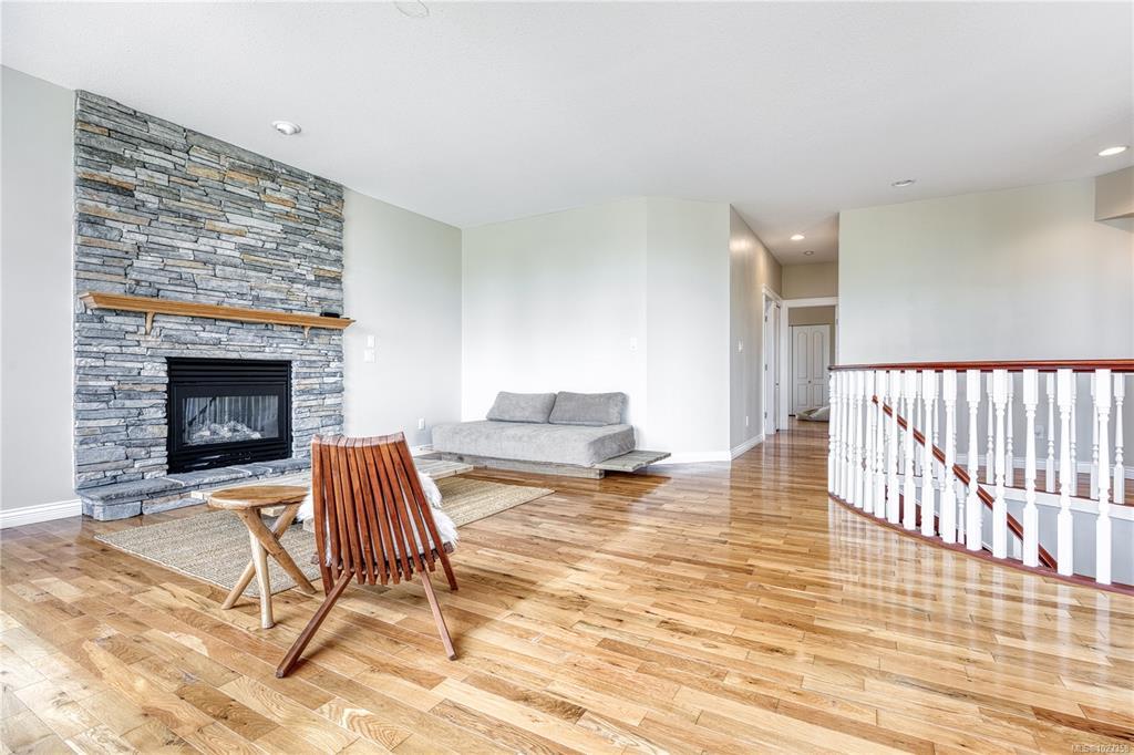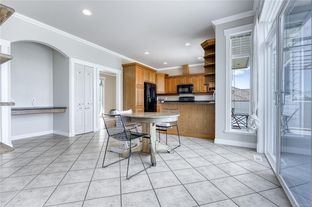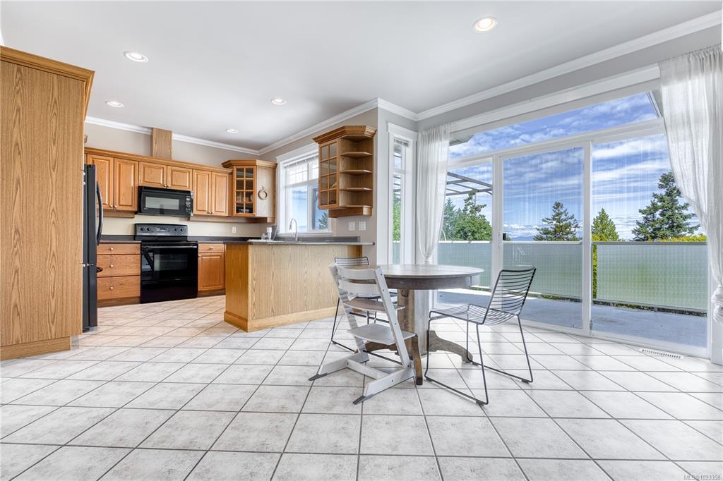 Semi-waterfront Eagle Point home with breathtaking ocean and snow mountains views, directly across from Lewis Beach Park and steps from beach access trails. Minutes from Woodgrove Mall, Costco, and top schools, this 5-bedroom home blends coastal charm with urban convenience. The main level boasts hardwood floors, a gas fireplace, a curved staircase, a dedicated office, two additional flexible-use rooms, and the primary bedroom, which features a walk-in closet, rear deck access, and a luxurious 4-piece ensuite with soaker tub and separate shower. The kitchen includes four appliances and a breakfast bar. The lower level offers a versatile 2-bedroom in-law suite with its own kitchen, laundry, and separate electrical meter—ideal for family, rentals, or Airbnb. The private rear yard, with minimal neighbor visibility, is beautifully landscaped with a covered patio. Extras include a sprinkler system, well maintained tree hedge. All data approximate; verify if fundamental.