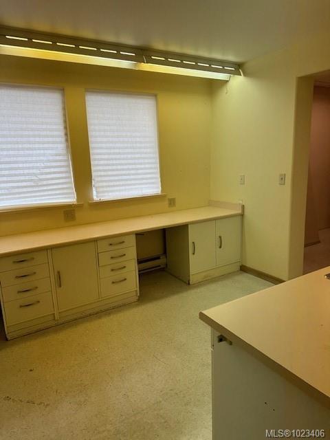 Bright, open corner unit with lots of windows and high vaulted ceilings. This unit has Cliffe Ave frontage with great visibility. This 1691 sq ft unit has a great open concept with a vaulted ceiling and exposed rafters, giving off a wow first impression. Very spacious & welcoming waiting room with a large reception desk. The space has several pods/work areas off the centre room, which can provide a private space while still being connected to the rest of the office. Includes a nice kitchen area and a private bathroom. Currently there are lots of work stations with sinks that could be suitable for several businesses. This unit shows great, the renovations are completed and it is ready to use. Please note this is a second floor unit with only stairs for access, no elevator.