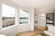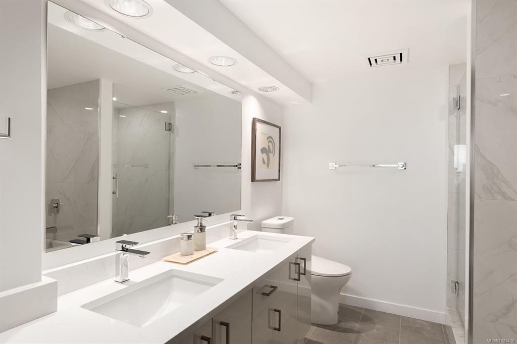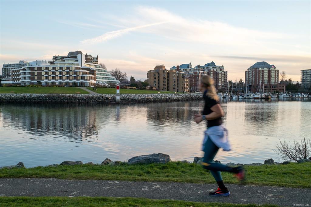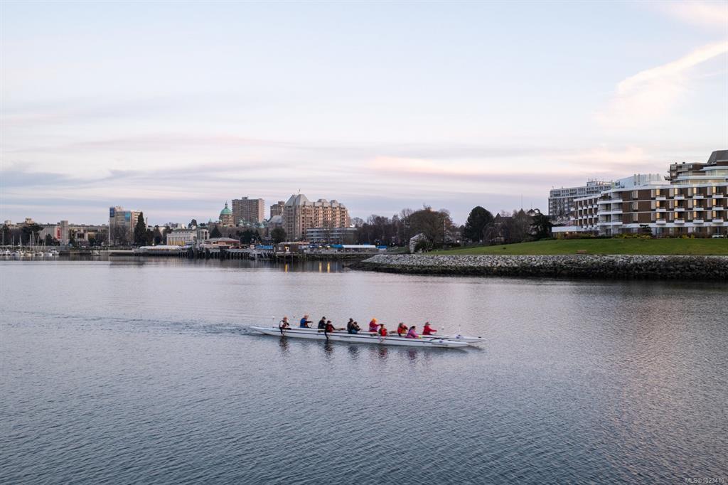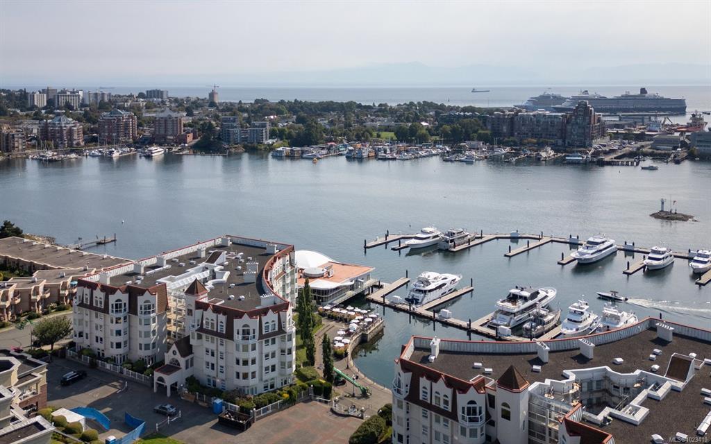 Experience the pinnacle of waterfront living in the heart of the Songhees at coveted Royal Quays. Fully renovated with top tier materials, including a fireplace finished in Italian tile, this executive condo blends comfort & sophistication. Abundant windows fill the home with natural light, highlighting the elegant finishes & living spaces. Excellent separation between the primary/2nd bed creates the feel of 2 private suites. Enjoy an expansive living & dining area with a cozy sitting space. The chef's kitchen includes a generous breakfast nook, designed to seamlessly connect to the living area for flexible entertaining. Step onto the private covered balcony & take in breathtaking easterly harbour views & the vibrant activity of Victoria’s waterfront. Embrace the Songhees lifestyle; stroll the scenic West Song waterfront trail to downtown Victoria or visit local favourites like Spinnakers & Boom+Batten. Royal Quays offers a warm community feel & impressive comforts.