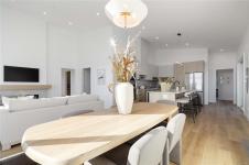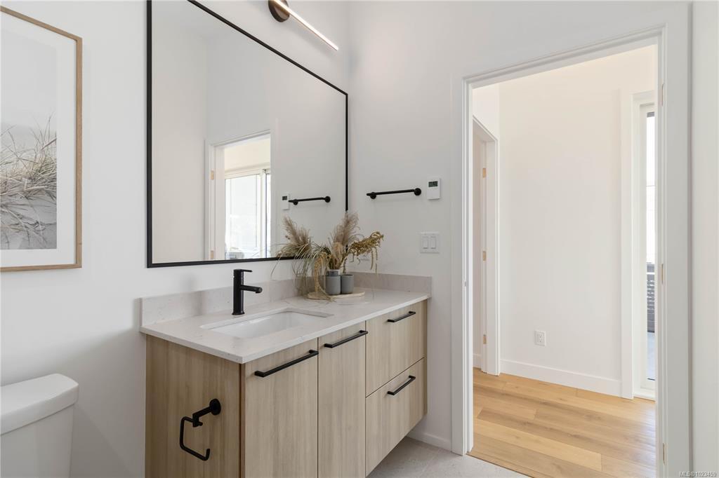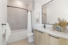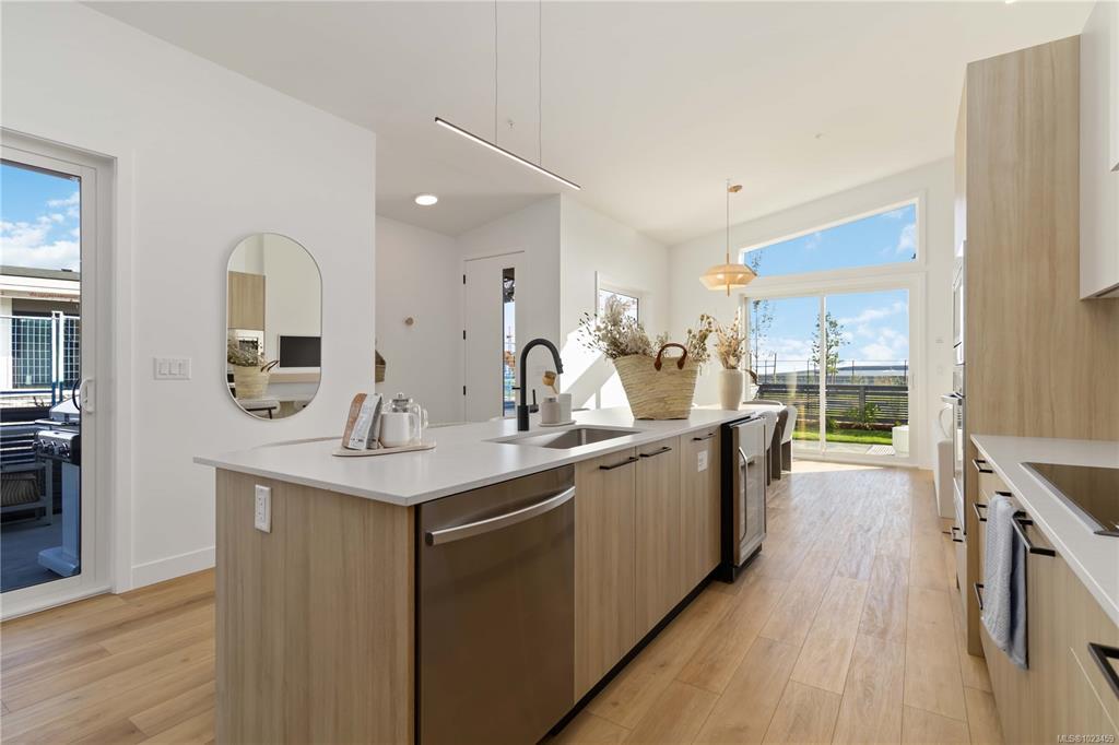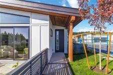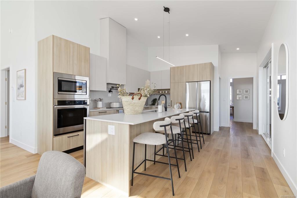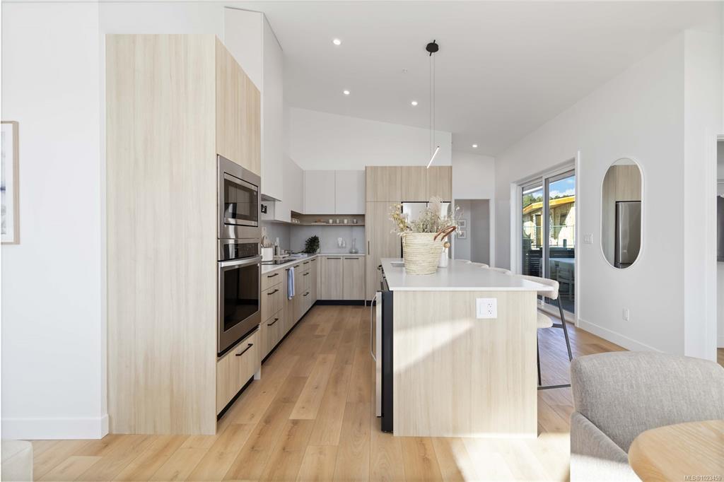 Epitome of effortless luxury! Stunning move-in ready 2-bed, 2-bath positioned near the ocean & vibrant local amenities. Meticulously designed single-level living, featuring soaring 9ft vaulted ceilings & open-concept with cozy fireplace that exudes sophistication & comfort. Gourmet kitchen with modern appliances including an induction cooktop, wall oven, engineered stone countertops & two-tone cabinetry with matte black hardware. Expansive primary sanctuary with spa-inspired ensuite featuring a modern frameless glass shower. 2nd bedroom stylishly appointed offering versatility for guests or a refined home office. Thoughtful amenities include energy-efficient climate control, luxury vinyl plank flooring throughout, & attached 2-car garage. The perfect blend of accessible elegance & coveted coastal lifestyle. Your luxurious oceanside retreat! Visit the HomeStore at 394 Tradewinds Ave, open Sat–Thurs from 12–4 pm. All measurements approx. Price is plus GST. Photos of a similar show home.