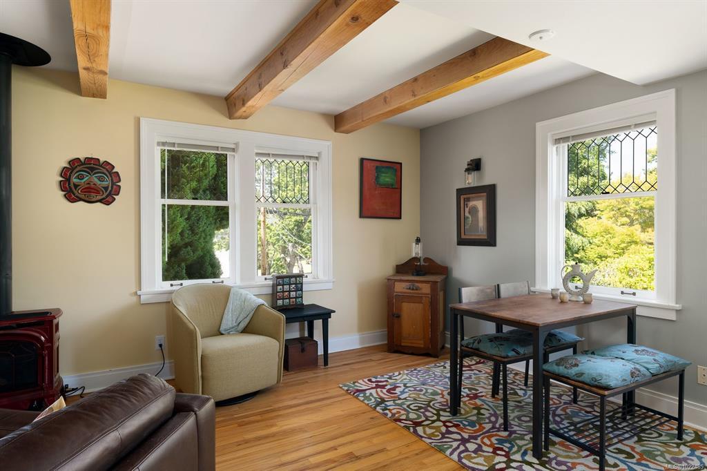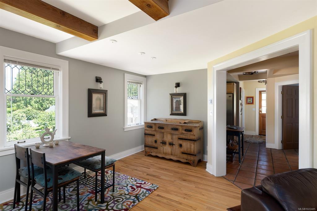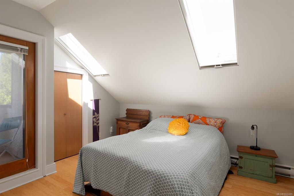 Set on one of Rockland’s beautiful tree-lined streets, this unique 2-bed, 2-bath home is part of a charming 1925 character conversion with just 5 residences. Warm & inviting, it offers abundant natural light & a generous 322-sq.ft. private south-facing deck with serene garden views. The main level features a spacious living & dining area with hardwood floors, a gas fireplace & elegant beamed ceilings. The open kitchen connects seamlessly to the living space, while a bedroom, full bath, & laundry complete the main floor. Upstairs, the primary bedroom is a peaceful retreat filled with natural light from two skylights, featuring a private balcony and a well-appointed ensuite. This sought-after neighbourhood is just a short distance to Government House, Downtown & Cook Street Village. With a parking space, storage locker, generous in-unit storage, and a quiet residential setting close to amenities and beautiful parks, this is a wonderful opportunity to own a piece of Rockland’s history.
