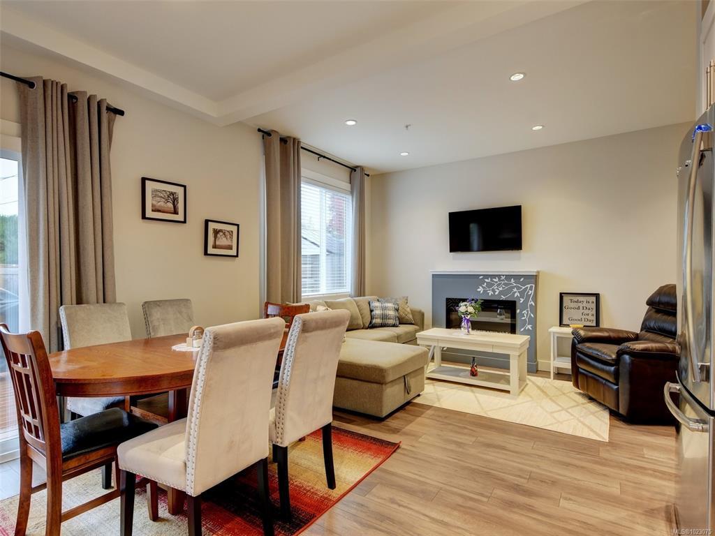 Wow, what a location! You are a 6 min. walk to the Village Food Market & 1 to the Sooke Brewing Co…and so much more in between. This lovely end unit is bright and pristine …offering 9' main floor ceilings, cozy living room fireplace, deluxe kitchen has clean lines, quartz countertops, soft close drawers/doors, stainless appliances & under cabinet lighting. The Primary bedroom with walk-in closet & sparkling 5-piece ensuite including tiled floors, double sinks & under kick LED motion activated lighting. The kitchen flows to the rear yard that is sunny and private and includes a storage. A great spot to chill or BBQ! Dogs & cats are welcomed, no size restrictions. You are a short stroll to all the core Sooke amenities…shopping, dining, schools, bus route, & and the list goes on and on. No disappointments here. Easy to view by appointment.