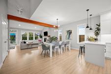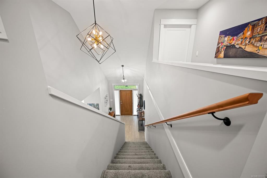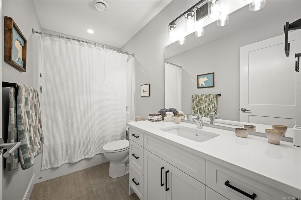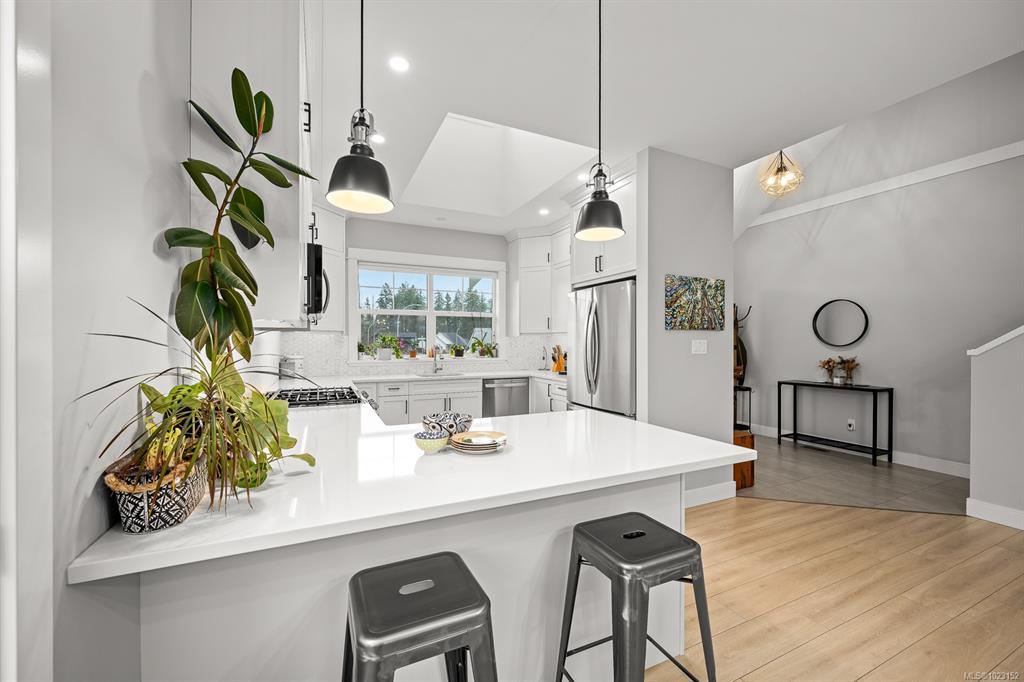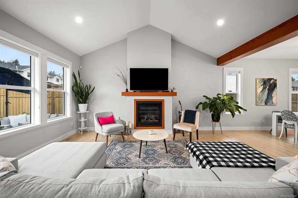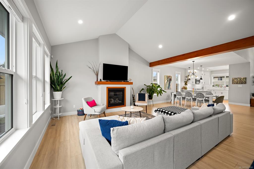 Built in 2021 by local builder Rideout Construction, this thoughtfully designed Courtenay home offers a functional and versatile layout on a quiet street in a highly desirable neighbourhood. The open-concept main floor is highlighted by over 12’ vaulted ceilings, exposed fir beams, and a cozy gas fireplace—creating a bright, welcoming space with true West Coast character. The primary bedroom is conveniently located on the main level and features a walk-in closet and an tiled ensuite with double sinks. Upstairs, you’ll find two additional bedrooms plus a spacious bonus family room ideal as a fourth bedroom, home office, gym, or media room. Quality finishes include Hardie plank siding, a heat pump for efficient year-round comfort, and a double car garage. Steps from Brookfield Park’s brand-new playground, surrounded by walking trails, and close to schools, shopping, amenities, and major routes. Top this off with a relaxing hot tub and a sun soaked patio for your own summer getaway!