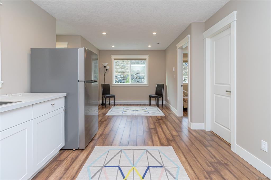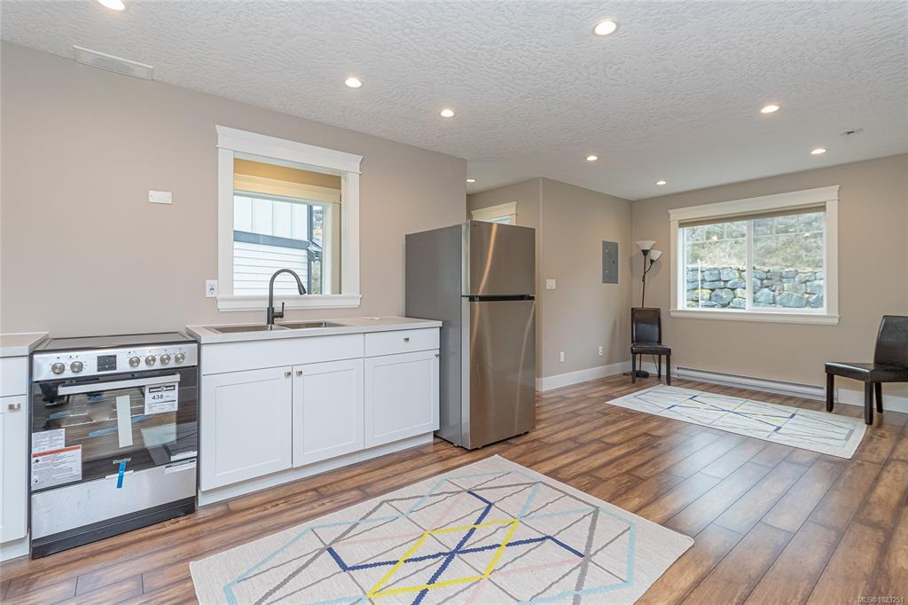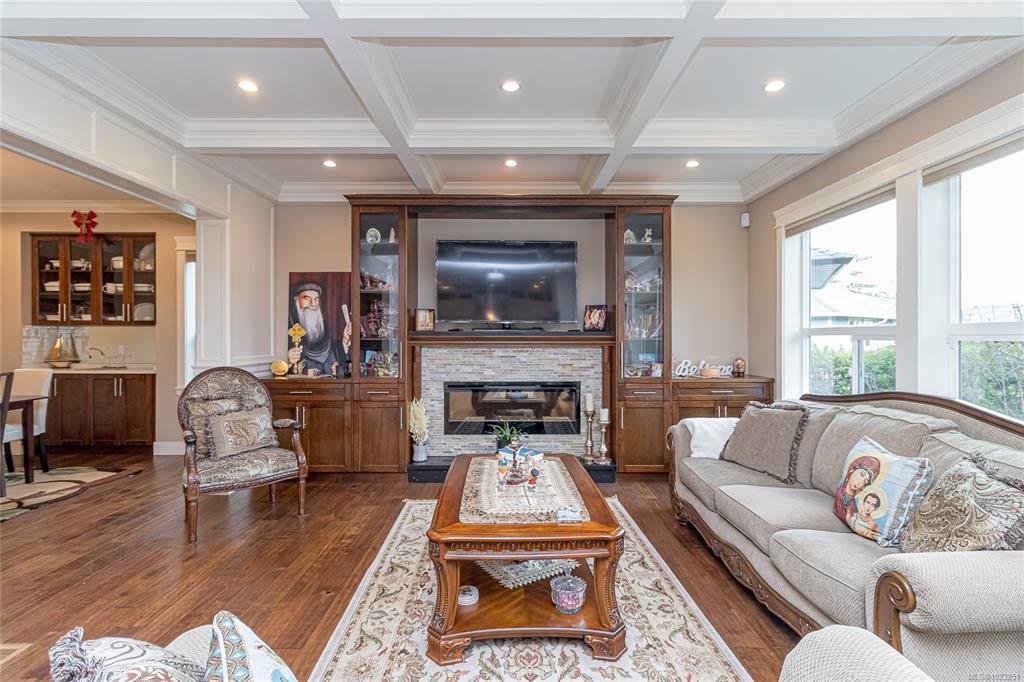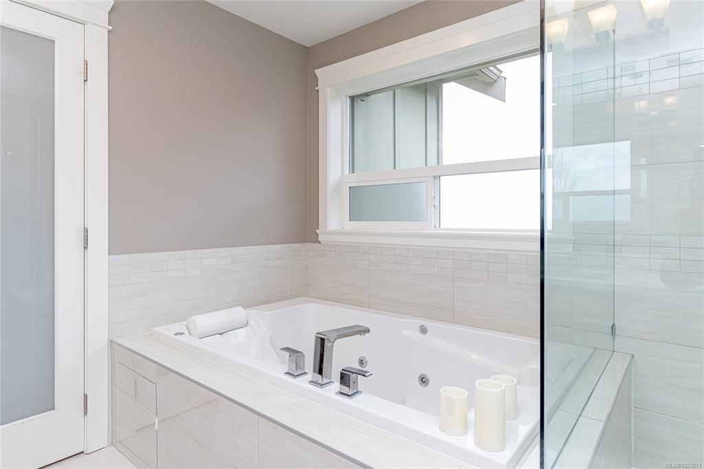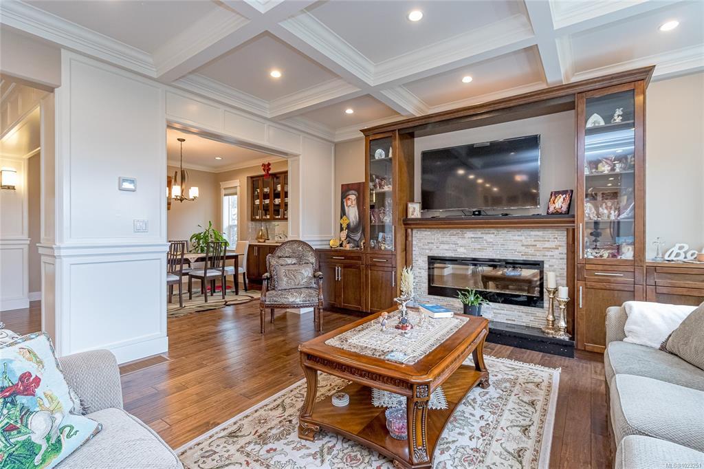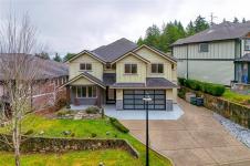 Executive and luxurious home perched at the top of World Class Bear Mountain Golf Resort. 4bed and an office, plus a legal 1bed suite above the garage. Gleaming hard wood floors, built in cabinetry, fireplace, coffered ceilings, wainscoting & panelled walls. White cabinetry kitchen w/large island, quartz countertops farmhouse sink built in wine rack, 5 burner gas stove, dual apron sinks & a massive hidden walk-in pantry. Upstairs find three LARGE bedrooms. Primary bedroom offers beautiful views, 2 oversized walk-in closets, built in vanity, dual sinks, large jetted soaker tub, walk-in rain hood shower, heated floors & quartz countertops. Suite is soundproofed w/its own side access & laundry set. Vaulted ceilings skylights heat pump crawl space security system hot water on demand extra storage & surround sound. The back yard has been tastefully landscaped, fully fenced w/ a dog run hot tub shed & covered BBQ shelter wired & heated roof. Exceptional location and exceptional layout!