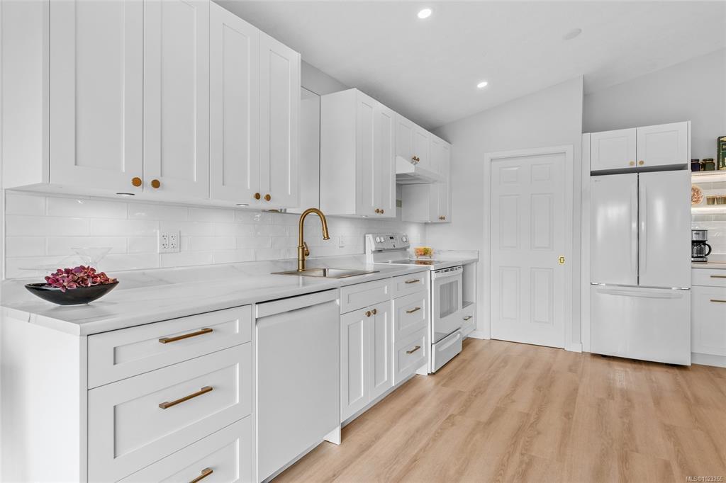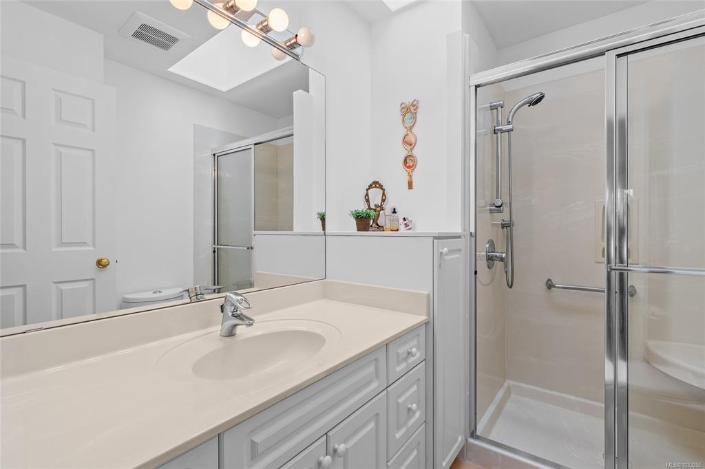 Sought-after Falcon Ridge Estates in Broadmead, this turnkey unit offers bright, south-facing main-level living w/ a garage & bonus parking. The open-concept living&kitchen area is filled w/ natural light & features extensive updates including a br&-new kitchen, updated flooring, fresh paint, new skylights, modern lighting, & a new hot water tank. The main floor is designed for easy living w/ a spacious primary bed w/ walk-in closet & ensuite, a 2nd bed, & laundry. The lower level provides excellent flexibility w/ two additional beds, a full bath, covered patio, & generous storage or hobby space.Enjoy outdoor living w/ a private front courtyard&a large south-facing deck. Residents benefit from a well-managed, pet-friendly 55+ community w/ exceptional amenities including an indoor pool, hot tub, sauna, clubhouse, library, billiards room, & RV/boat parking. Walkable to Broadmead Village w/ easy access to parks, trails, Downtown, Sidney, the airport, & BC Ferries.