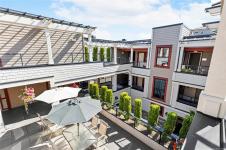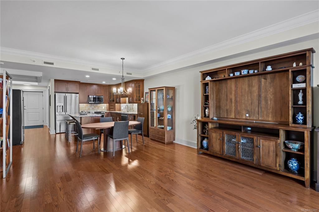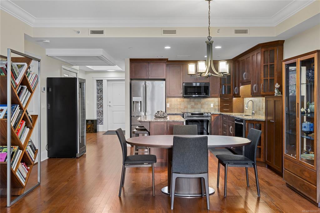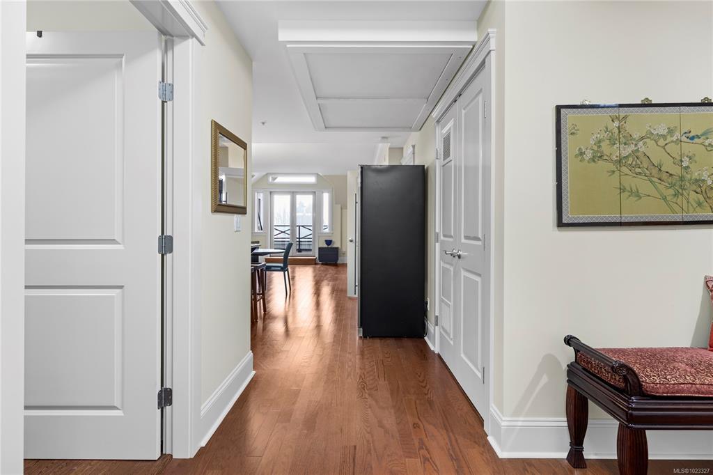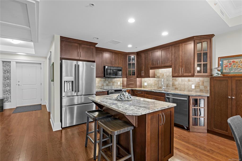 Top floor ocean view unit in Villa Rose, a 55+ community in downtown Qualicum Beach's all-concrete building. This 2 bed, 2 bath condo features a northeast-facing balcony with Strait of Georgia & island views. Hardwood floors throughout with no carpeting. Open-concept kitchen with granite counters, under-counter lighting, island & new stainless steel fridge. Brand new heat pump with air conditioning. Sun tubes enhance natural light in living space & primary bedroom. Spacious primary bedroom plus second bedroom for guests or home office. Villa Rose's solid ICF concrete construction delivers exceptional soundproofing & fire separation. Secure underground parking, storage locker, secured entry, elevator, and private residents' courtyard. Pets & rentals allowed. Steps to downtown's boutique shops, galleries, restaurants, cafes, groceries & Ravensong Aquatic Centre. Close to Qualicum Beach's sandy beaches. Ready for quick possession in one of Qualicum Beach's most desirable buildings.