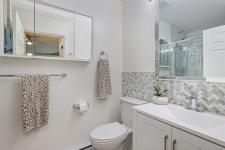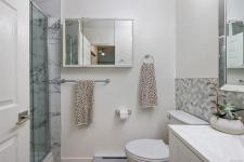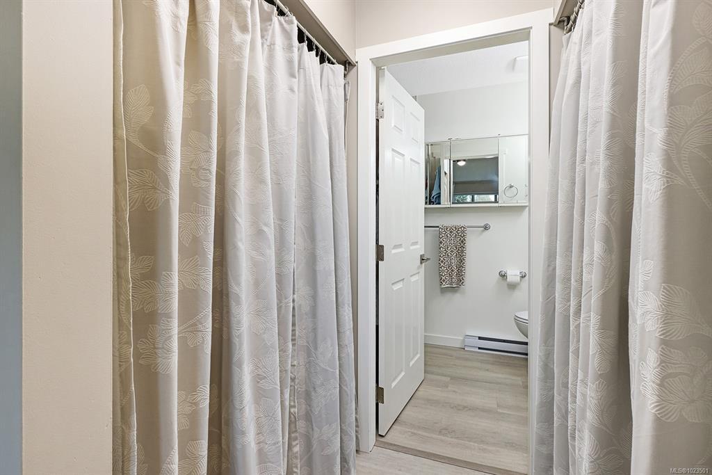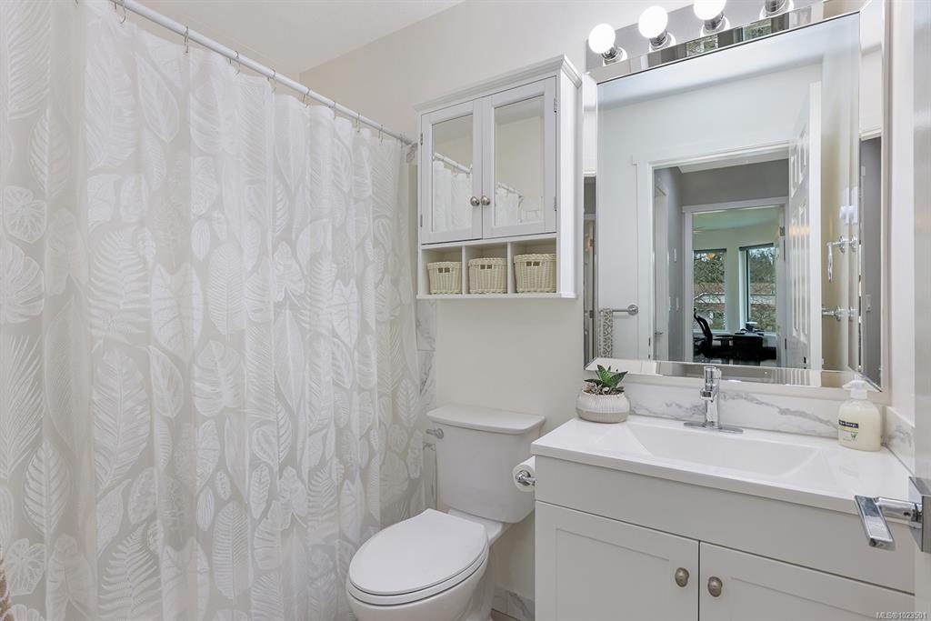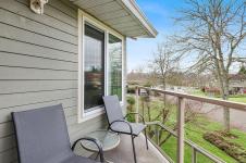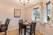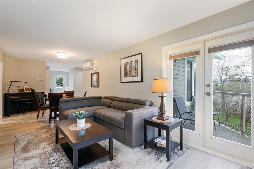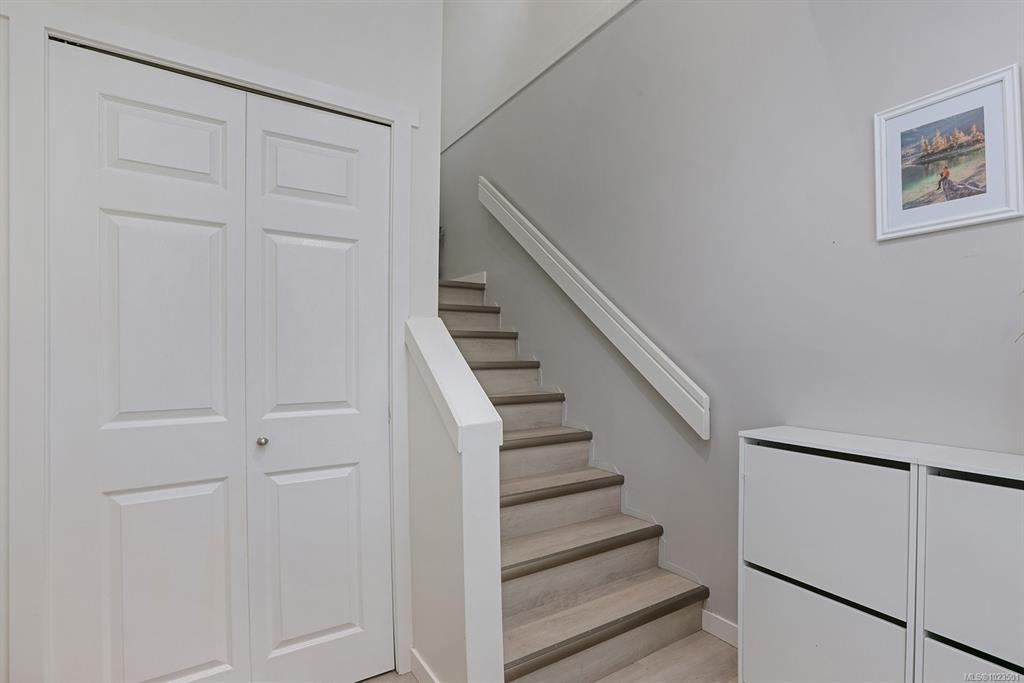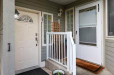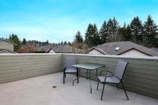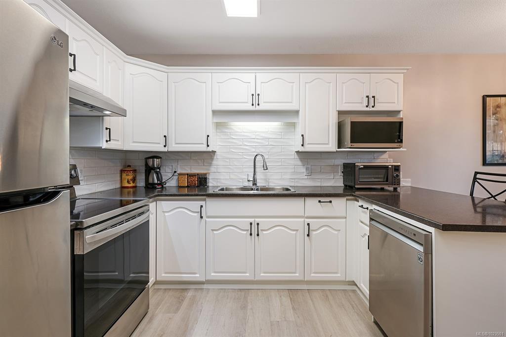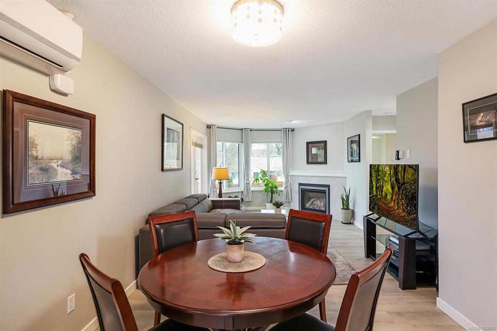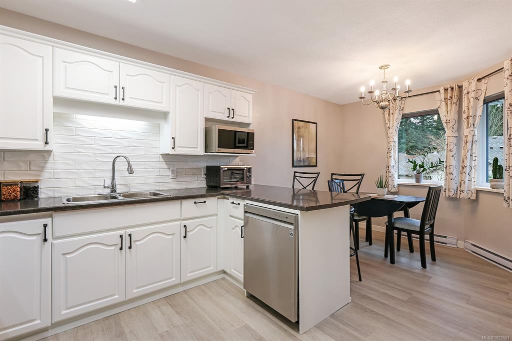 Beautifully updated and well-maintained townhome with a convenient location and fabulous views! Two decks, one with SW exposure and one with NE mountain views add to the spacious floorplan of 1,359 sf, 2 BD/ 2 BA. This lovely 2nd floor townhome boasts a stunning new natural gas high-end fireplace with tile surround, hearth and mantle by Cameron, professionally refinished kitchen cabinets, new tall toilets, a split pump for efficient heating and air conditioning, vinyl plank flooring, triple pane windows, and freshly painted walls. Abundant windows create a light filled happy home including a spacious primary bedroom with vaulted ceilings and beautiful 3 pce ensuite with tiled shower and gorgeous herringbone tiled feature walls. The kitchen offers lots of counter workspace, s/s appliances, white backsplash with a serene coastal, handmade look, and a cozy breakfast nook with a view. A covered carport, lots of storage, close to transit, parks, shops, NIC college and the Hospital.
