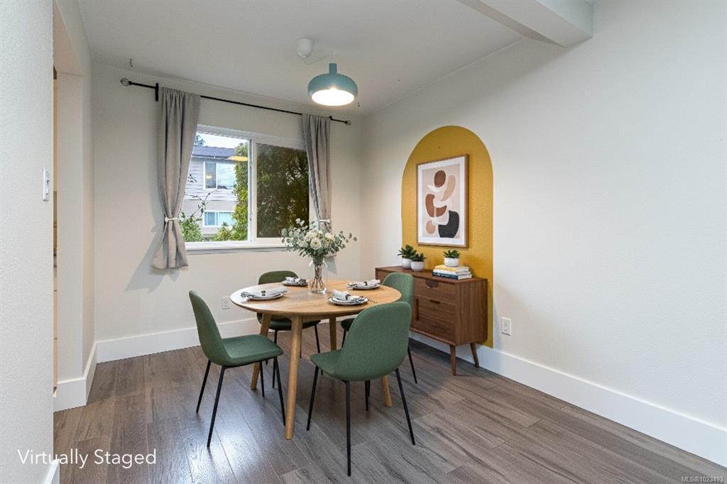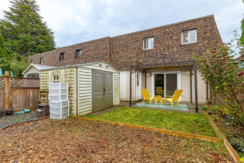 Welcome home to this tastefully updated 3-bedroom end-unit townhome in the heart of Saanichton. Move-in ready with fresh paint, modern lighting, and stylish flooring throughout, this home blends comfort with colourful touches of whimsy. The main level offers a bright kitchen, dining area, powder room, laundry, and a spacious living room opening onto a sunny, fully fenced backyard — perfect for kids, pets, and BBQ gatherings. Upstairs features three bedrooms, including a generous primary with walk-in closet and an updated 4-piece bath. A versatile flex/office/storage space just off the living area adds extra functionality. Enjoy two parking stalls, a large garden shed, and visitor parking. Meadow View is a well-run, family- and pet-friendly strata just steps from Saanichton Village shops and cafes, Centennial Park, and minutes to the hospital, airport, and downtown Victoria.