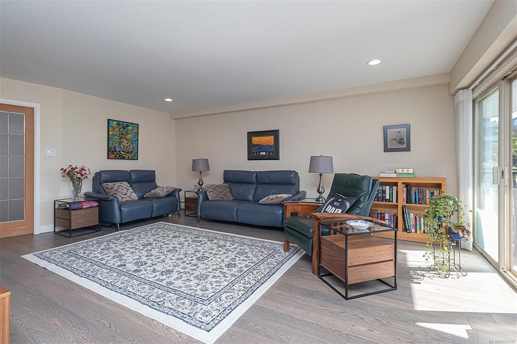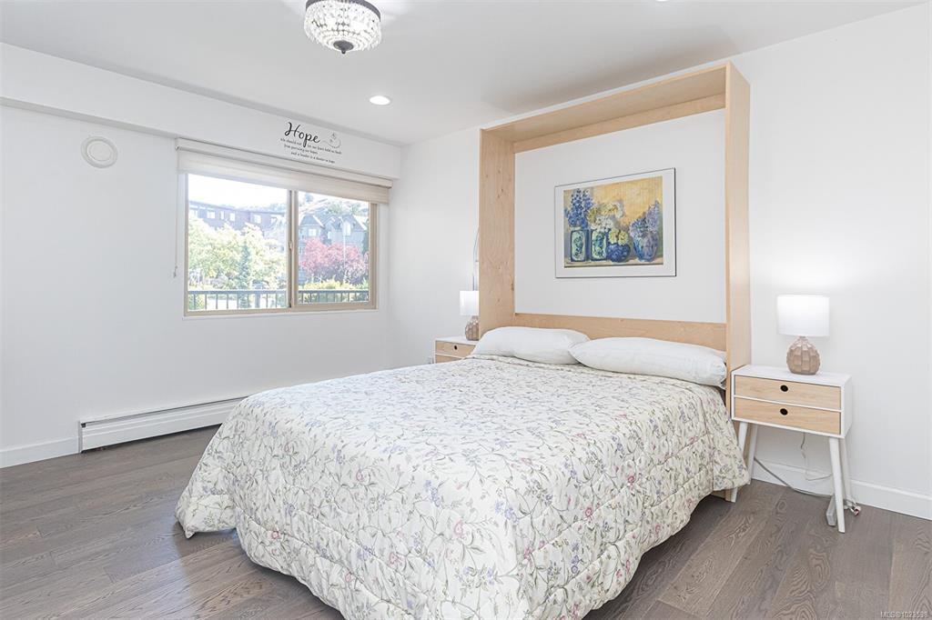 Modern and bright southeast-facing 2-bedroom + den suite offering over 1,500 sq ft of stylish living space. Enjoy an unbeatable location—just steps to shopping, restaurants, transit, and the University of Victoria. This beautifully updated home features a renovated kitchen with modern Stainless Steel Appliances, upgraded bathrooms, new flooring, designer lighting, and fresh décor throughout. The spacious layout is perfect for comfortable living and entertaining. The well-managed strata includes heat and hot water in the fees, plus great amenities like an indoor pool, workshop, recreation room and sauna. Separate storage and parking included. Enjoy your time on the expansive 170 sq ft balcony. The den offers a Murphy bed which is wonderful to have for guests. This is a SECOND FLOOR SUITE. A rare find in an exceptional area!