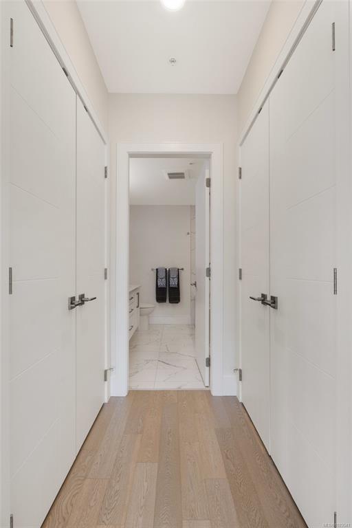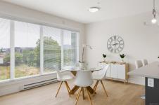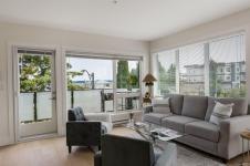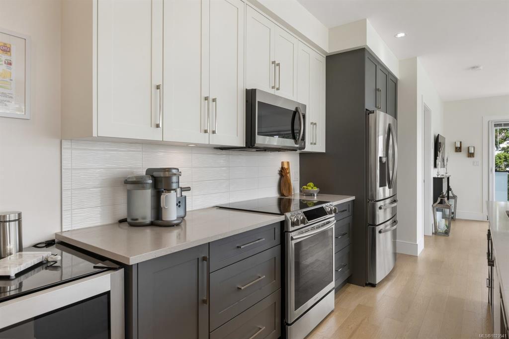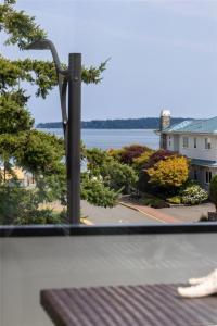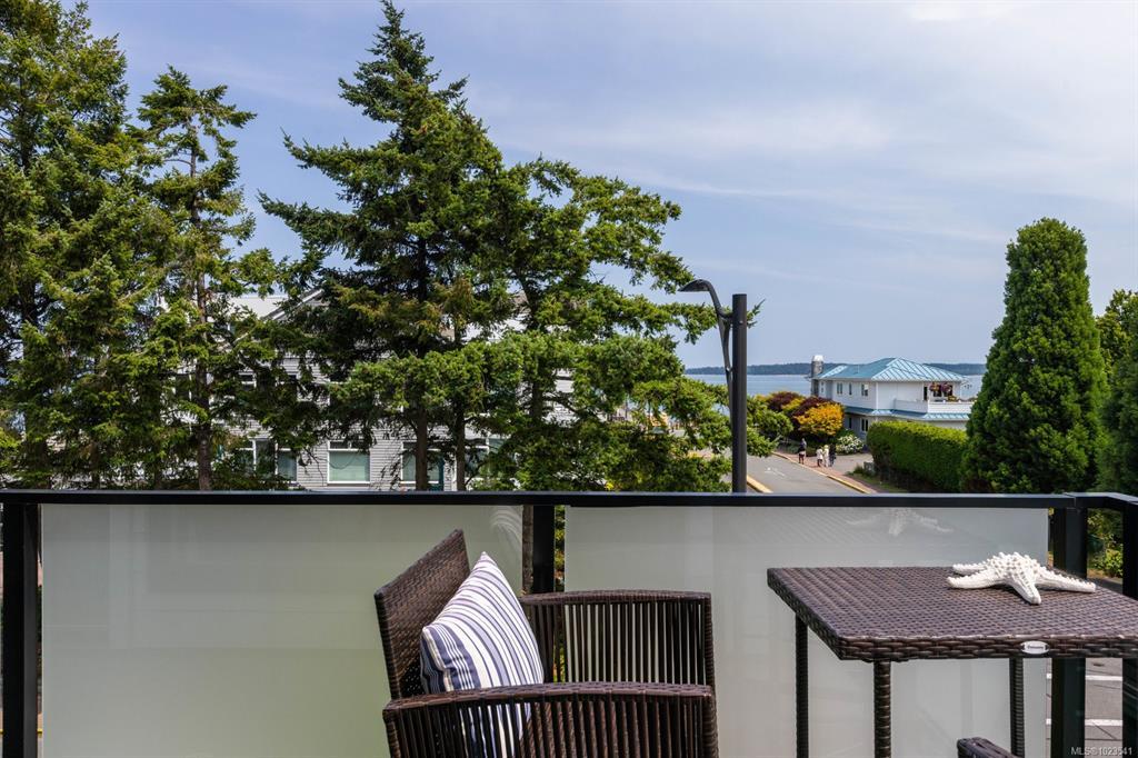 Experience the best of seaside living in this elegant 2-bed, 2-bath condo in vibrant downtown Sidney. Beautifully appointed, the condo offers ocean views. Inside, you'll find high-end finishes, oversized windows, and a chef-inspired kitchen featuring stainless steel appliances, a quartz island, and abundant storage. The open-concept layout is ideal for entertaining, with seamless flow between the kitchen, dining, and living spaces. The spacious primary bedroom includes a walk-through closet and a luxurious 5-piece ensuite bath. Step onto your private deck to enjoy morning coffee while taking in sunrise views over the water. Additional highlights include fresh paint, blackout blinds in the bedrooms, roll-out kitchen drawers, secure parking, and a storage locker. With no age restrictions and just steps from Sidney’s vibrant shops, restaurants, and waterfront boardwalk, this condo offers the perfect blend of luxury and location. A must see opportunity!