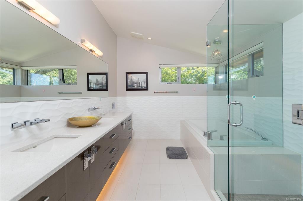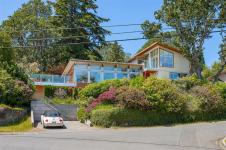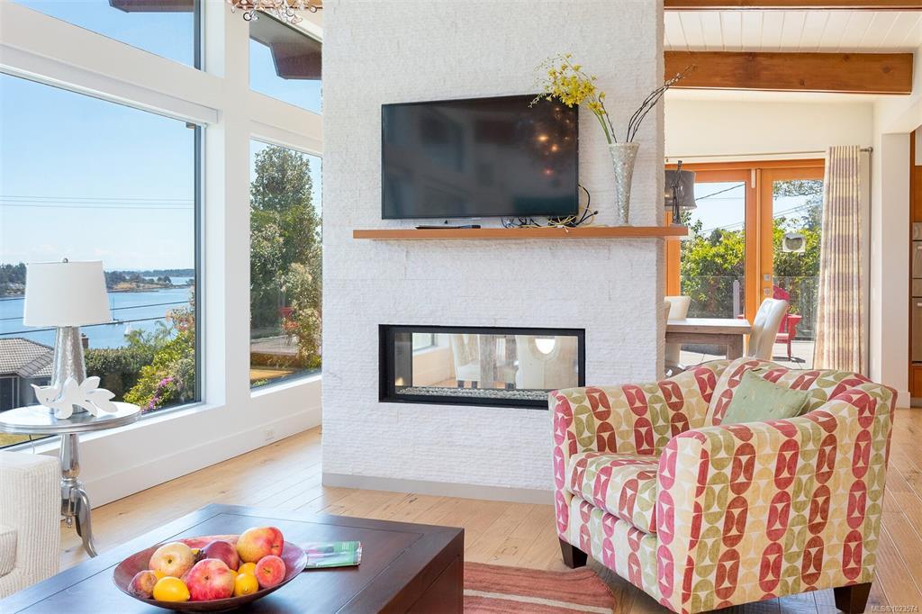 Enjoy spectacular, picturesque ocean views from both the main and upper level! This exceptional modern residence boasts 3500+ sq.ft. of meticulously crafted design/complete renovation by the multi-award-winning CITTA GROUP. The open concept plan offers expansive windows with incredible views, living & dining rooms w/2-sided fireplace, large bright gourmet kitchen w/ high-end SS appliances, granite countertops/centre island. A dedicated office/bedroom + 2nd bedroom on the main floor enhance functionality. The deluxe upper level primary retreat (added in 2013) offers panoramic ocean views, lavish ensuite & spacious WIC. The lower level has separate entrance + guest room w/ ensuite, gas fireplace, media center. Top of the line finishings, engineered Hickory floors throughout the main and upper levels, in-floor radiant heat, gas fire box on huge entertainment deck, and wine rack and bar in family room. Steps from Cadboro Bay beach, Village shops, restaurants & amenities, Gyro Park & UVic.