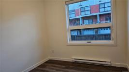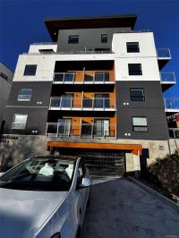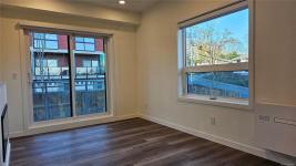 Brand-new, move-in-ready contemporary 2-bedroom, 1-bath condo featuring an efficient heat pump system for year-round comfort. The modern kitchen is designed in a Caligo colour palette, blending clean neutrals with contemporary tones, and is finished with quartz countertops and black stainless steel KitchenAid appliances. A stylish kitchen island with bar seating provides the perfect space for casual dining and entertaining. Everyday comforts include full-size stackable laundry, air conditioning, and window screens, while blackout blinds in the bedrooms create a peaceful retreat. The bathroom is elevated with luxurious in-floor heating. Residents enjoy outstanding shared amenities such as a fully equipped gym, a bright atrium, and a welcoming courtyard. Ideally located in the heart of Esquimalt, just minutes from the ocean, downtown Victoria, the Naval Base, Saxe Point Park, Esquimalt Market, Archie Browning Sports Centre, and a wide range of shops and services.