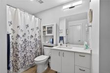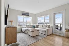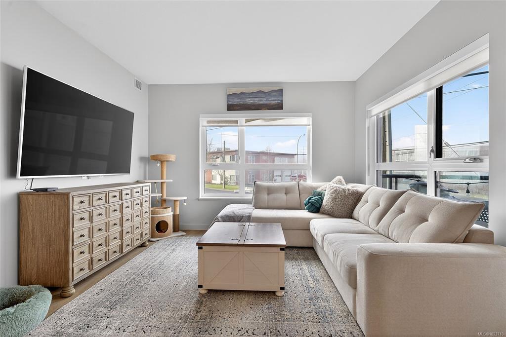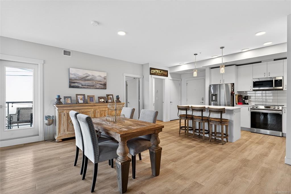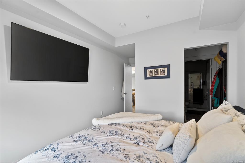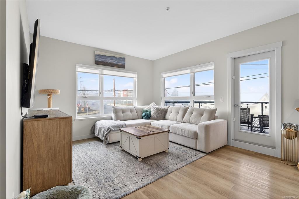 Welcome to Mosaic at Jensen, Parksville’s modern green built condo community in the heart of downtown. This spacious 2 bedroom, 2 bathroom home features the desirable Cabernet floor plan with an open layout and excellent bedroom separation. Northwest facing, the unit offers ocean views toward the Salish Sea and Lasqueti Island, plus a generous balcony ideal for afternoon light and evening sunsets. Inside are 9’ ceilings, quartz countertops, contemporary cabinetry, triple pane windows, and an energy efficient heat pump for heating and cooling. The functional design includes an office nook, in suite laundry, and bright open living space. The home includes a secure underground parking stall steps from the elevator, bike storage, entry with security system, a fourth floor storage locker, plus pet and rental friendly bylaws. Owner occupied and maintained in show home condition. Enjoy a walkable lifestyle with shops, cafes, restaurants, parks, and the beach just steps away.