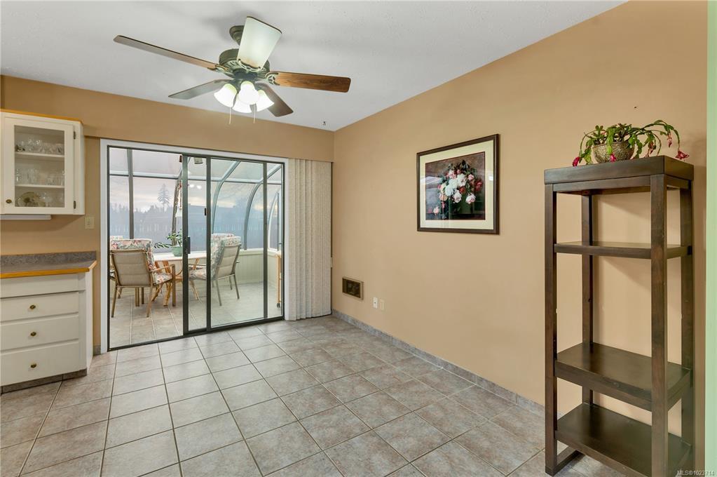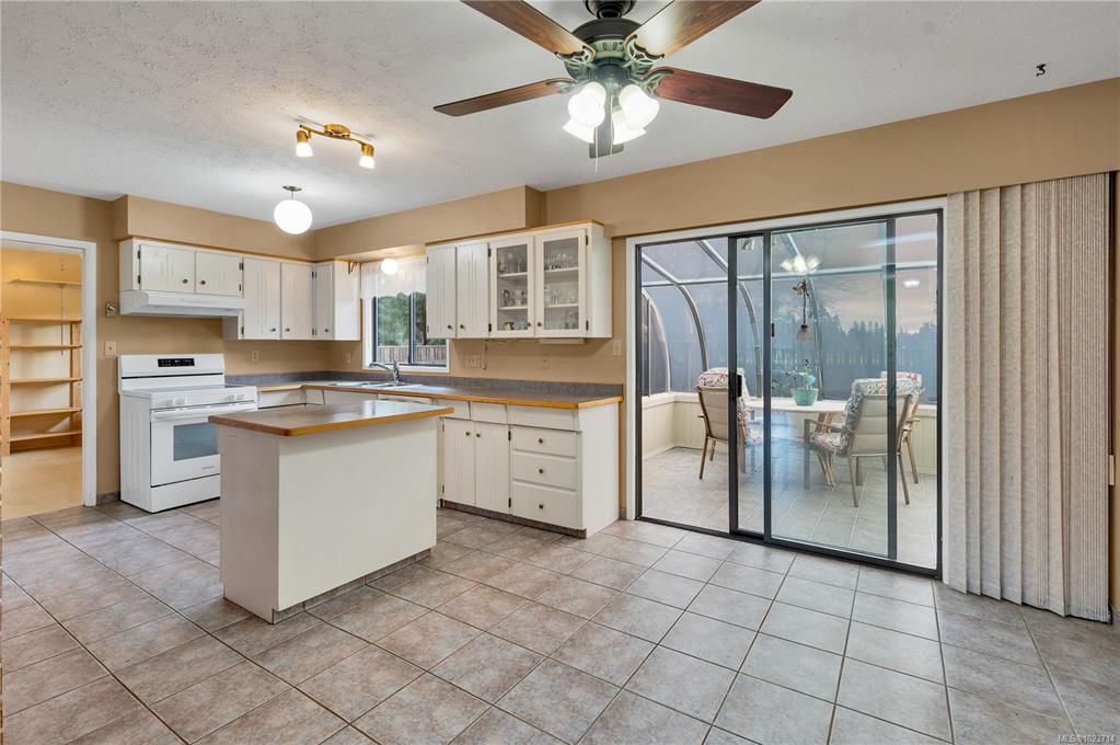 The kitchen, thoughtfully positioned to overlook the backyard, offers plenty of prep space and storage, while the bright sunroom provides a peaceful retreat to enjoy the private yard year-round.