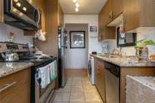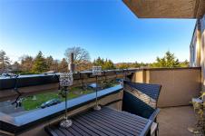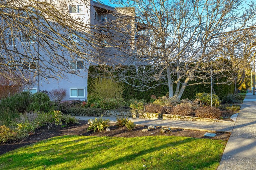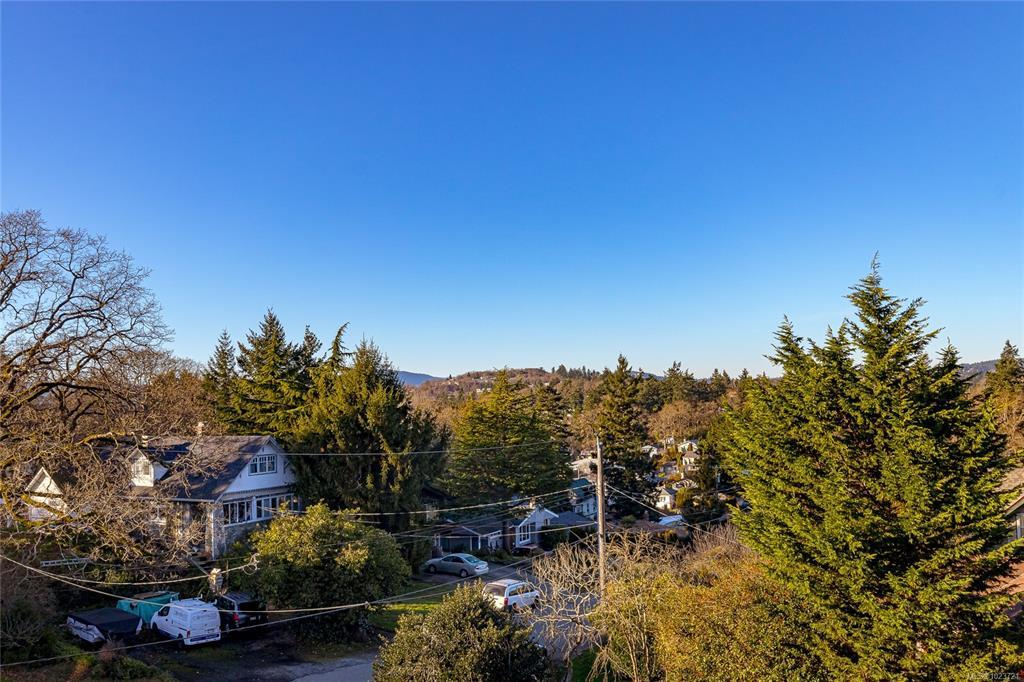 Top-floor and corner privacy with sunset views. This 2 bed, 1 bath condo (approx. 900 sq ft) enjoys west-facing mountain and skyline vistas of the Saanich skyline, bathing the home in natural light all afternoon. The layout offers great separation of spaces with the bedrooms set away from the main living and kitchen area. In-suite laundry keeps day-to-day life simple, and the kitchen has seen recent appliance updates, including a newer dishwasher. Strata fee includes heat and hot water, adding year-round comfort and predictable costs. Window coverings and appliances are included, so you can settle in quickly. Tucked on the quiet side of the building, it feels peaceful while still being close to everything. One parking stall is included, plus extra storage for bikes and seasonal gear. No age restrictions and pet friendly for both cats and dogs. Central location near transit, shopping, schools, major routes and the Galloping Goose Trail. A great blend of light, privacy and convenience.
