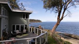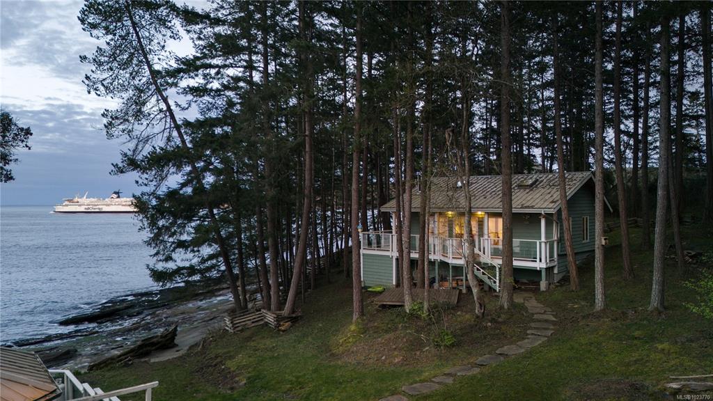 ATTENTION FOREIGN BUYERS — An exceptional opportunity to purchase TWO oceanfront properties on beautiful Galiano Island. This private West Coast retreat—set on a combined 1.74 acres with approximately 250 ft of east-facing, low-bank waterfront—includes a beautifully renovated main home plus a modern 758 sq ft, 2-bedroom, 1-bath detached cottage—ideal for guests or extended family. The main home offers 2 bedrooms (potential for a 3rd), 2 bathrooms, and 2,638 sq ft of light-filled living space featuring exposed log beams, vaulted ceilings, and floor-to-ceiling windows that frame sweeping ocean views. Thoughtful renovations preserve the home’s original character, highlighted by a salvaged Orpheum Theatre railing. A 916 sq ft workshop provides excellent potential for an office, or guest space. Bordering Bellhouse Park, this private setting offers front-row seats to abundant marine wildlife. A rare chance to secure 2 oceanfront homes, 1 remarkable setting, and endless possibilities!