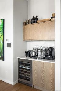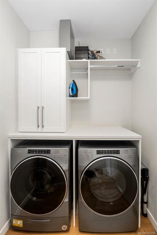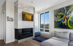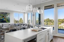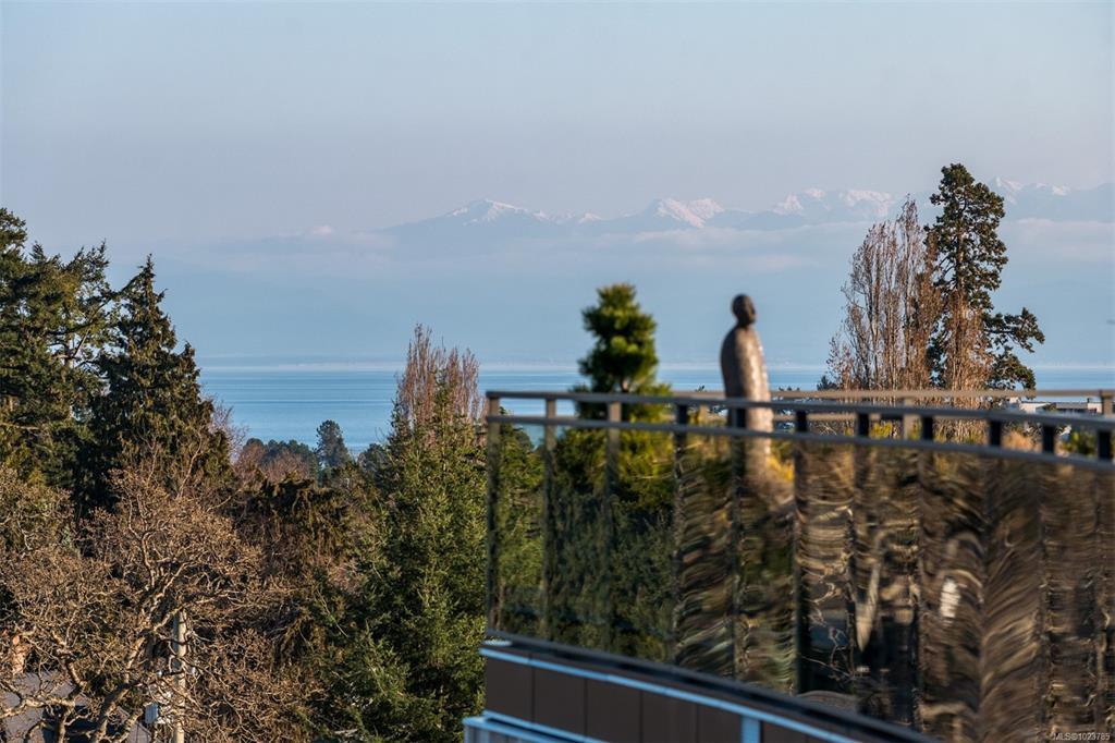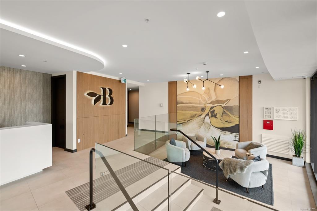 Welcome, YOUR new penthouse at Bellewood Park awaits! You'll enjoy views of the city and mountains from this exclusive 2 bedroom, 3 bathroom+ den home. The kitchen is loaded with top-of-the-line appliances: Wolf gas cooktop, double wall oven, double Blomberg refrigerator, and a Fisher & Paykel double-drawer dishwasher. For the wine enthusiast, a wine fridge is conveniently built-into you mini bar zone. Every detail in this penthouse has been meticulously curated: electric blinds, heated bathroom floors, providing warmth and comfort. The built-in outdoor patio heater allows you to enjoy the the beautiful views year-round, while the gas fireplace adds a cozy touch indoors. 10'8" ceilings and customized lighting throughout, the space feels open and inviting. Parking is a breeze with your Private 2-car garage and and additional 3rd parking with an EV charger, perfect for eco-conscious homeowners. All within minutes of downtown, Dallas Rd, Cook St village and more!