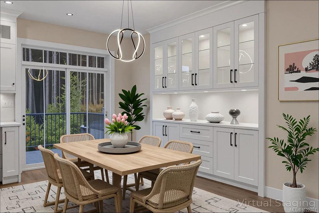 A modern & private home where thoughtful details and quality finishes shine throughout. An open-concept main level offers great flow between the living, kitchen, and dining areas. The living room features a tray ceiling and cozy fireplace, while the dining area includes custom built-in cabinetry. The kitchen features a spacious island, quartz countertops and elegant lighting. From here, step out to the large deck, perfect for entertaining. The primary suite includes a walk-in closet and ensuite. Two more bedrooms and a full main bath complete the upper level. On the entrance level, you’ll find a versatile bedroom or home office with exterior entrance, plus a self-contained 2-bed legal suite, ideal for extended family or mortgage helper. Located in a sought-after neighbourhood with close access to schools, and amenities, this home offers a perfect balance of modern style and practical living.