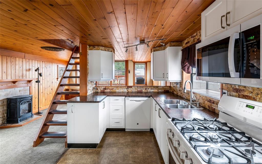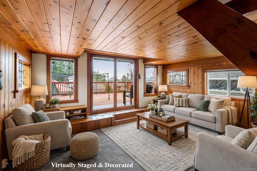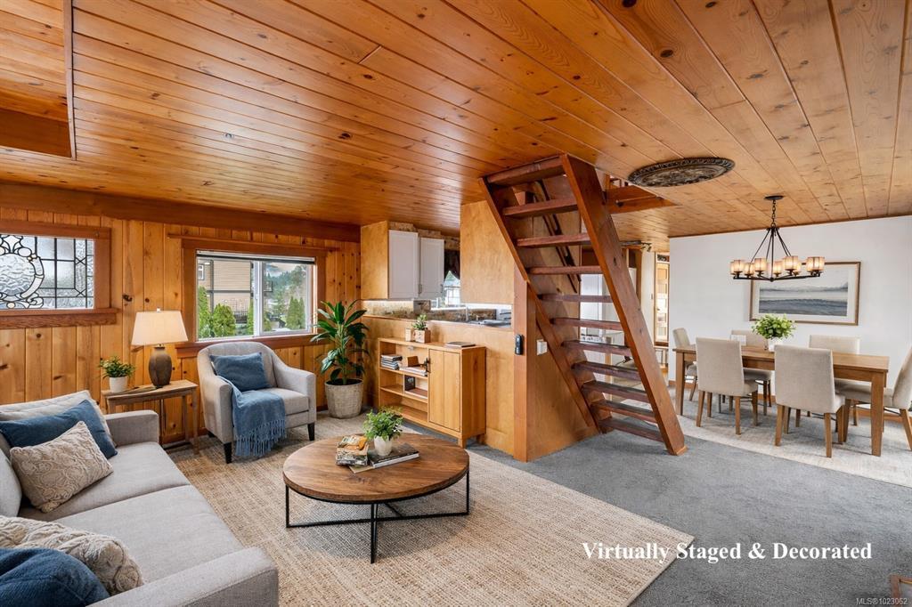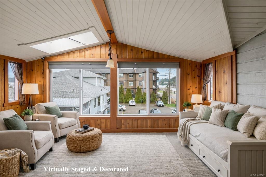 Zoned C2/R3 – rare blend of residential & commercial flexibility, allowing for a wide range of uses, including potential for an secondary suite - buyer to verify. Truly special & one-of-a-kind opportunity to own one of the most unique homes on Vancouver Island. Beautifully maintained & updated, this home tells a story unlike any other. Originally built as a float home, it was professionally relocated onto a foundation in 2013, creating a solid & distinctive residence with 3 beds + den, 3 baths & 1747sqft. Main floor is cozy & calming with natural materials, ocean views, propane fireplace, expansive (hot tub ready) deck & ample storage in the laundry room — great layout for everyday living. While upstairs you’ll find 2 beds, cozy den w/electric fireplace & 3pc bath. A full-height basement provides potential for a suite, home office or short term rental. Outside, enjoy lovely landscaping, ample parking & a walkable lifestyle—just steps to the ferry, boardwalk, restaurants & amenities.
