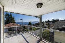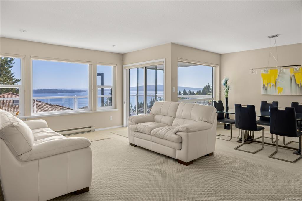 Come to guided tour of Arbutus Ridge Sat 12:00 SHARP at front gate. One owner must be over 55. Enjoy south-facing OCEAN VIEWS in this GATED GOLFING COMMUNITY. This beautifully maintained 3-bed, 3 bath plus den home offers panoramic ocean views. Enjoy ocean views on this MAIN LEVEL LIVING home, with its large picture windows leading out to a spacious deck. On the left is a large primary bedroom, with custom 5 piece ensuite bathroom, along with the second bedroom, a den with built in daybed and a 4-piece bathroom. Straight ahead is the living room and formal dining room both with gorgeous views. And, on the right is a beautiful open concept kitchen, breakfast area and a laundry/mud room with direct access from double car garage. Downstairs is a spacious recreation and media room, third bedroom with its own 4 piece ensuite bathroom and fabulous storage area. All of this is just short walk to the community rec centre where there is a cafe, swimming pool and organized community activities.