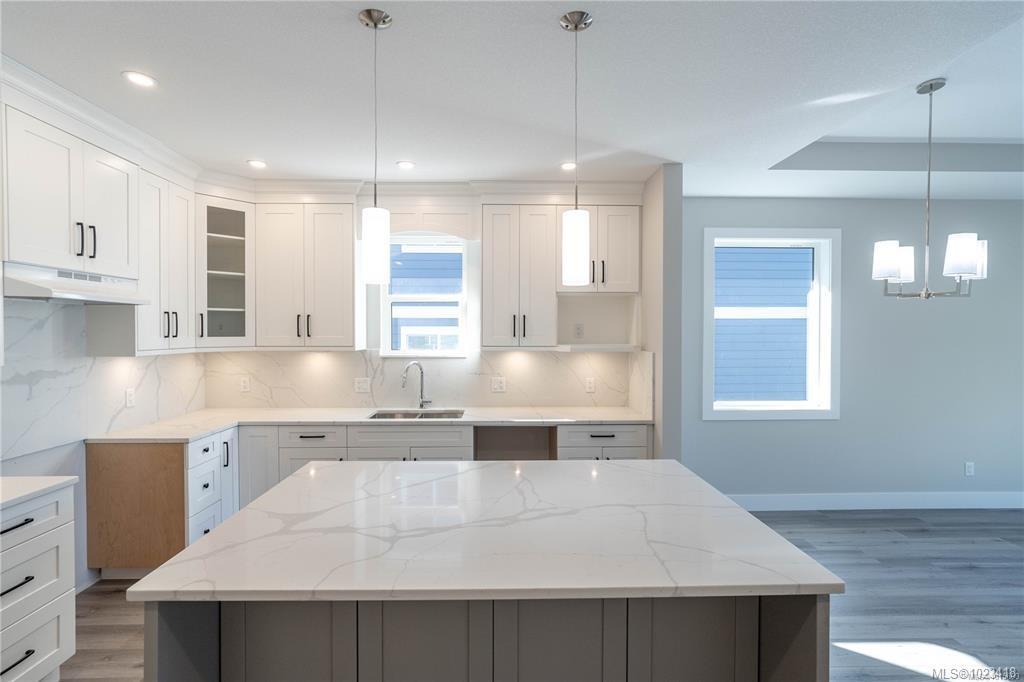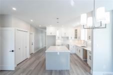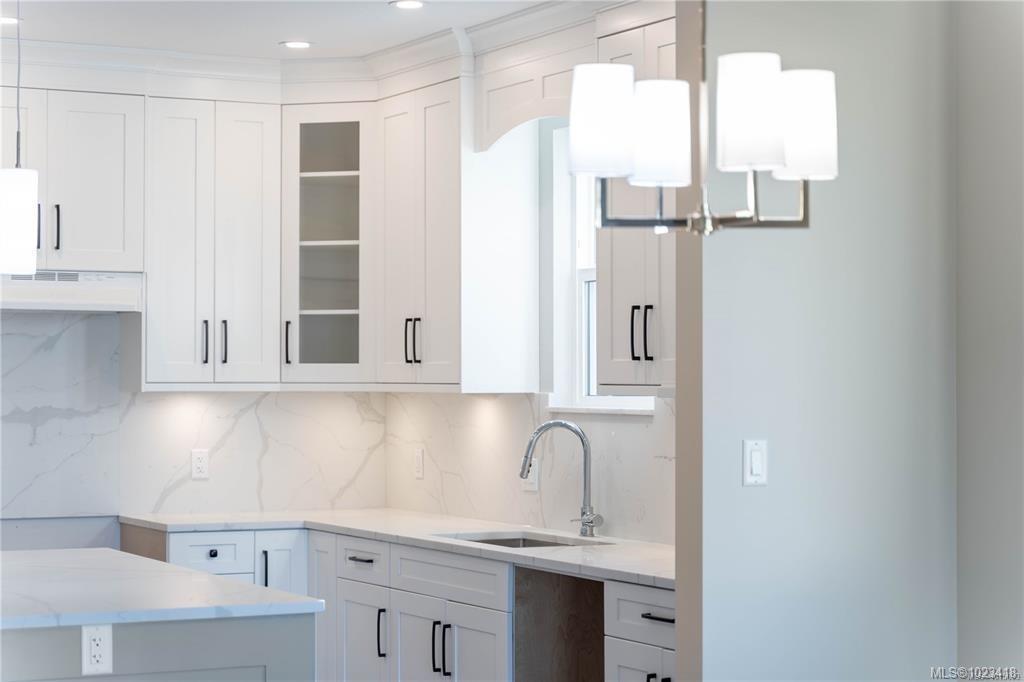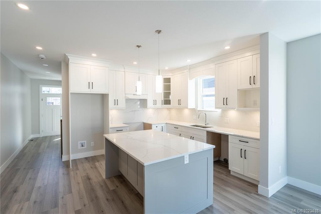 At this enchanting location discover impressive amenities & a rare 1 bed legal suite. Enjoy forest & ocean views from the primary bedroom, living room and back deck. The kitchen offers elegant white cabinetry with soft-close drawers/ doors, under-cabinet lighting, & luxurious quartz countertops & backsplash. A tray ceiling in the living room enhances the spacious feel, complemented by durable laminate flooring and stylish tile in the bathrooms. Additional highlights include 9’ ceilings, an on-demand hot water system, and a natural gas furnace with air conditioning roughed in, plus a natural gas barbeque r/i connection on the patio. The legal 1 bed suite has convenient level entry, its own hydro meter for electric
