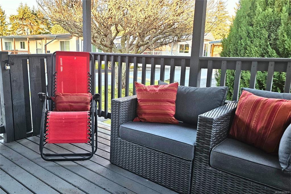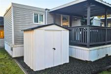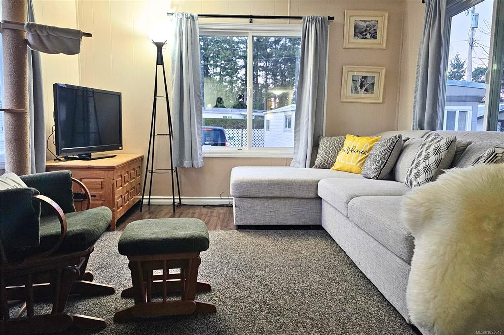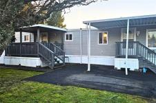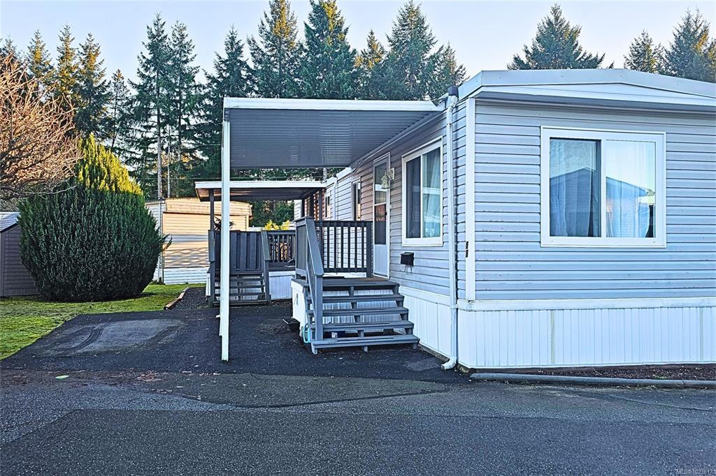 Welcome home. Located in the peaceful and well-managed Crest 1 Park, this 2-bed, 1-bath manufactured home offers quiet living just a short stroll from Woodgrove Mall, shops, restaurants, public transportation, and North Nanaimo’s everyday amenities. The functional, easy-care layout features a bright living area and a white kitchen with ample cupboard space. Over the past 2 years, several New Updates have been completed, including plumbing, roof, propane furnace, hot water tank & new flooring in the primary bed and bath, providing comfort and peace of mind. The 2 beds offer flexible use, and a stacking washer & dryer add convenience. A separate covered entry leads into the home, while the covered deck provides an enjoyable outdoor space. Additional features include a detached storage shed and parking for one vehicle. Crest 1 is a sought-after 55+ community allowing one pet with approval and features a clubhouse. Situated on a main bus route. Quick possession is possible. Meas. approx.