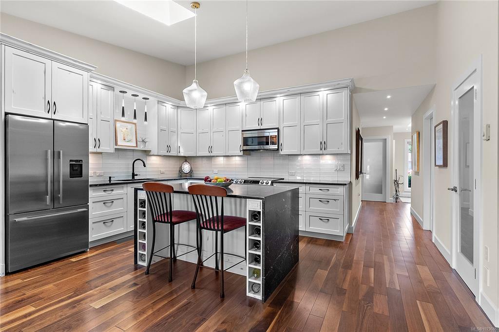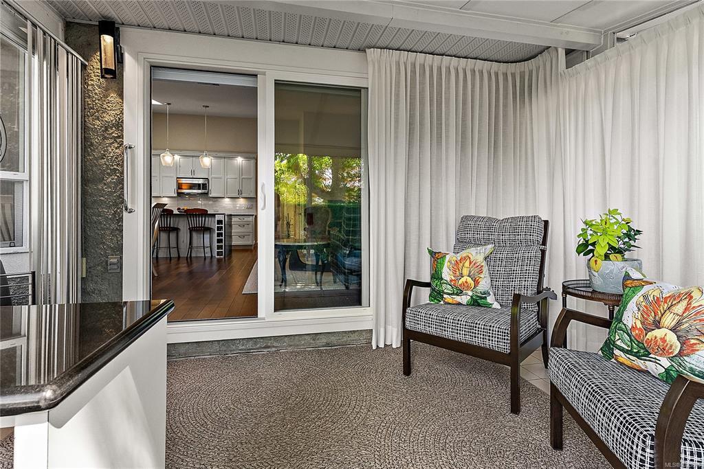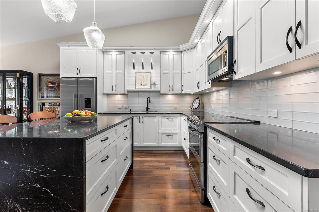 Absolutely beautifully updated 1,279 sq ft one-level townhouse in the sought-after Water’s Edge Oceanfront Resort Community, Central Saanich. Bright & spacious 2 bed, 2 bath home designed for comfort, style & accessibility. Updated kitchen w/ auto-closing skylight, split double oven, induction cooktop (incl new pots), twin-drawer dishwasher, fridge/freezer & microwave. Quality finishes incl manufactured hardwood, marble, slate & tile floors. Sunroom off living room, front-load washer/dryer, blinds, HWT in double garage, plus excellent storage w/ custom closet & cupboard organizers. Primary suite offers a grand entrance lg walk-in closet & beautiful 3-pce ensuite w/ lipless shower, heated floors, & TOTO Washlet. Updated main bath also w/ heated floors. Wide hallways, walk-in pantry & other accessibility features. Resort-style amenities incl indoor pool, hot tub, sauna, exercise room, library, guest accommodations & lounge, BBQ area, putting green & tennis court. Oceanfront steps away.