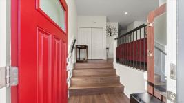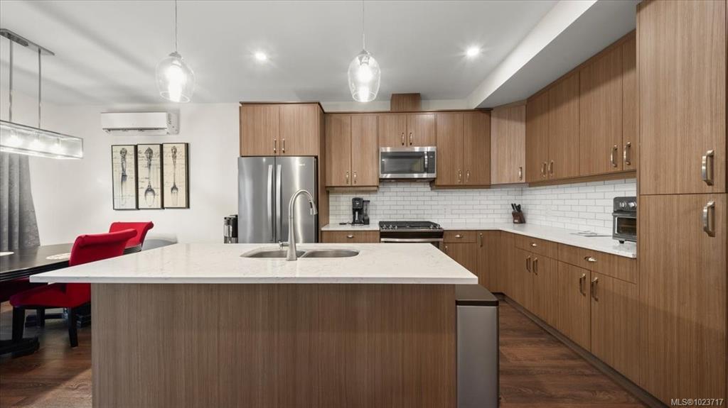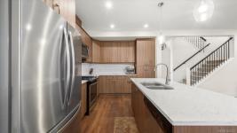 PRICE ADJUSTMENT! This three-level family residence is designed to impress. Built in 2018, set on a peaceful cul-de-sac in the Westhills community with access to shops, schools, and scenic walking trails—a true showcase property. Spanning three floors, the main level highlights a bright living room with walkout deck and customizable outdoor lighting, a family room, and a sleek open-concept kitchen finished with quartz counters, plus powder room. Upstairs features 3 bedrooms, including a master retreat with spa-inspired ensuite and walk-in closet, alongside a full bath and generous laundry. The lower level shines with a private bedroom, full bath, and large rec area—perfect for extended family, long-term guests, or excellent rental potential. A double garage with private entry and three storage rooms adds convenience. The landscaped backyard with gas BBQ hookup is reached from the main level or side staircase. Exceptional space, modern design, and still covered by new home warranty.