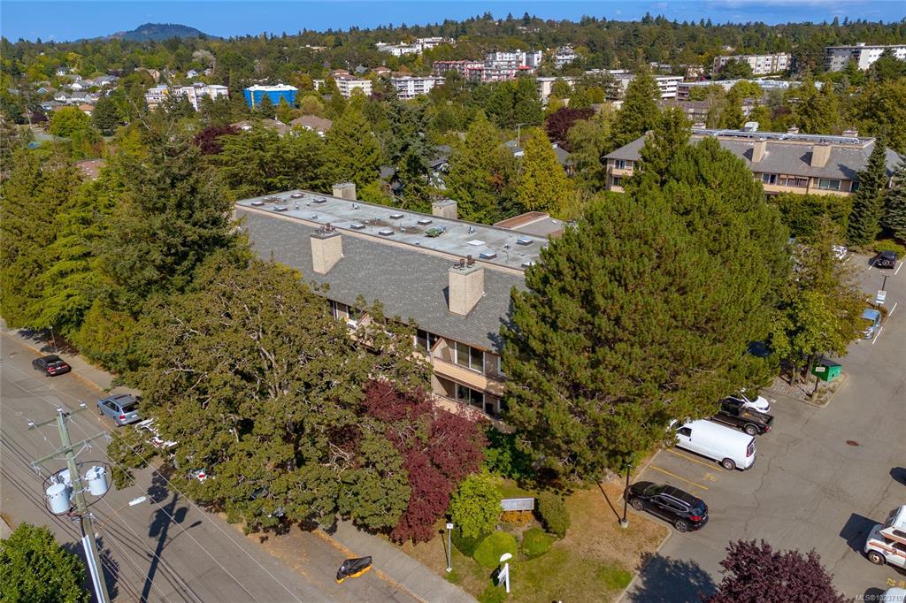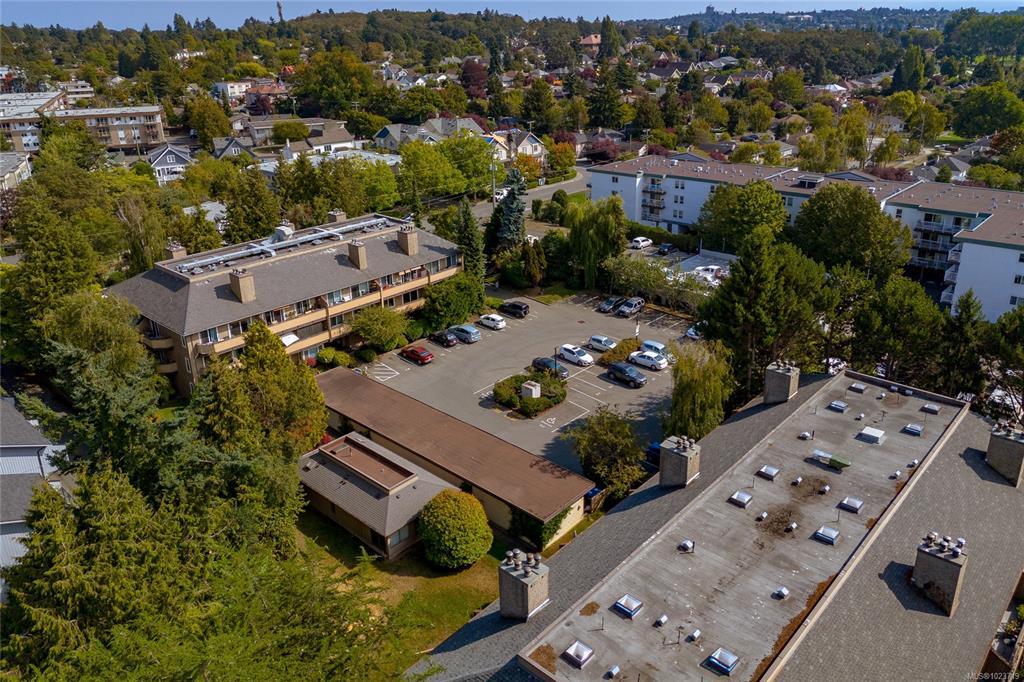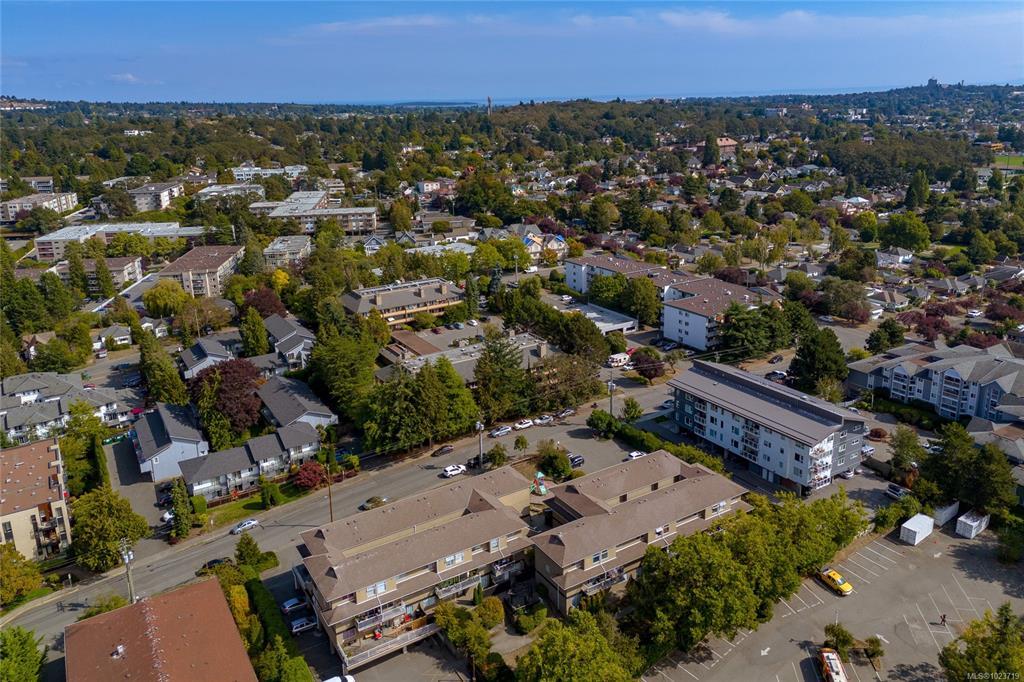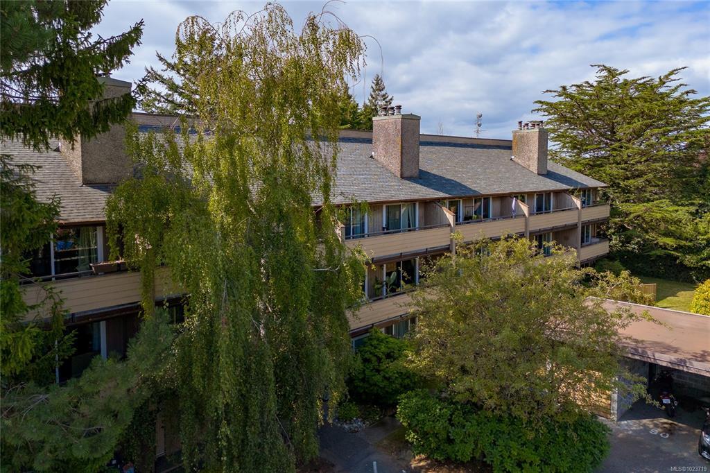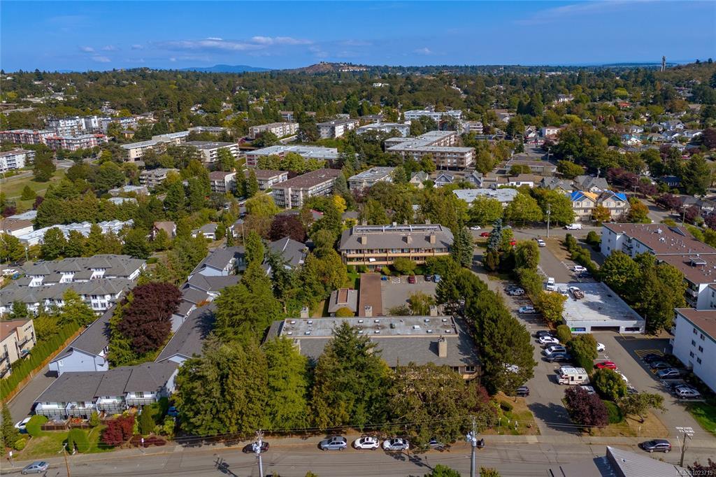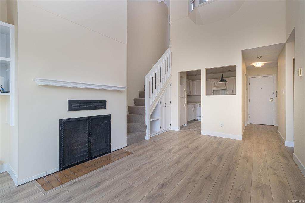 2-level, top-floor corner unit offers the spaciousness & feel of a townhouse w/2 balconies. This family-friendly complext is part of a well-managed strata. Bright spacious living room boasts a vaulted ceiling for an airy feel & a cozy wood-burning fireplace perfect for those cool winter eves. LRG kitchen layout w/eating area.Updates include new flooring, fresh paint throughout, & thermopane windows/doors. Large MSTR BR is located next to the 3 PC BA, & the versatile “dining area” can easily convert into a 3rd BR, complete w/private balcony & closet. Upstairs, the LRG BR features a skylight closet & a 2 PC BA, could be used as a BR, office or family room. Enjoy ample storage space, including a separate storage locker. Bonuses include a common guest suite & free laundry. This centrally located unit is within easy walking of distance of both Mayfair & Uptown malls, & is located on a direct busroute with easy access to UVIC & Camosun College, this one is definitely an ideal location.
