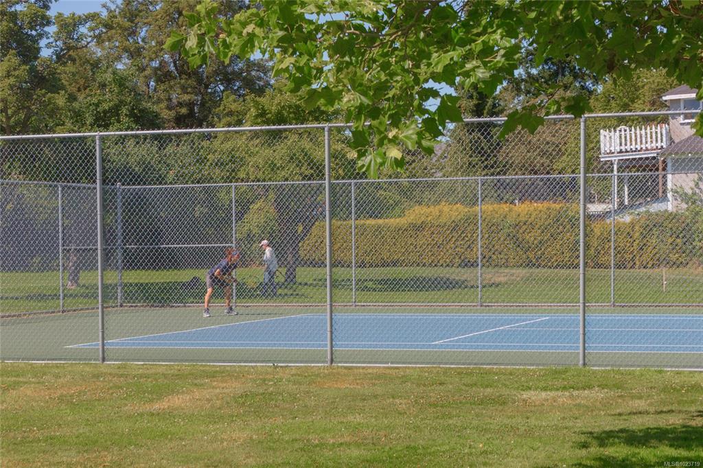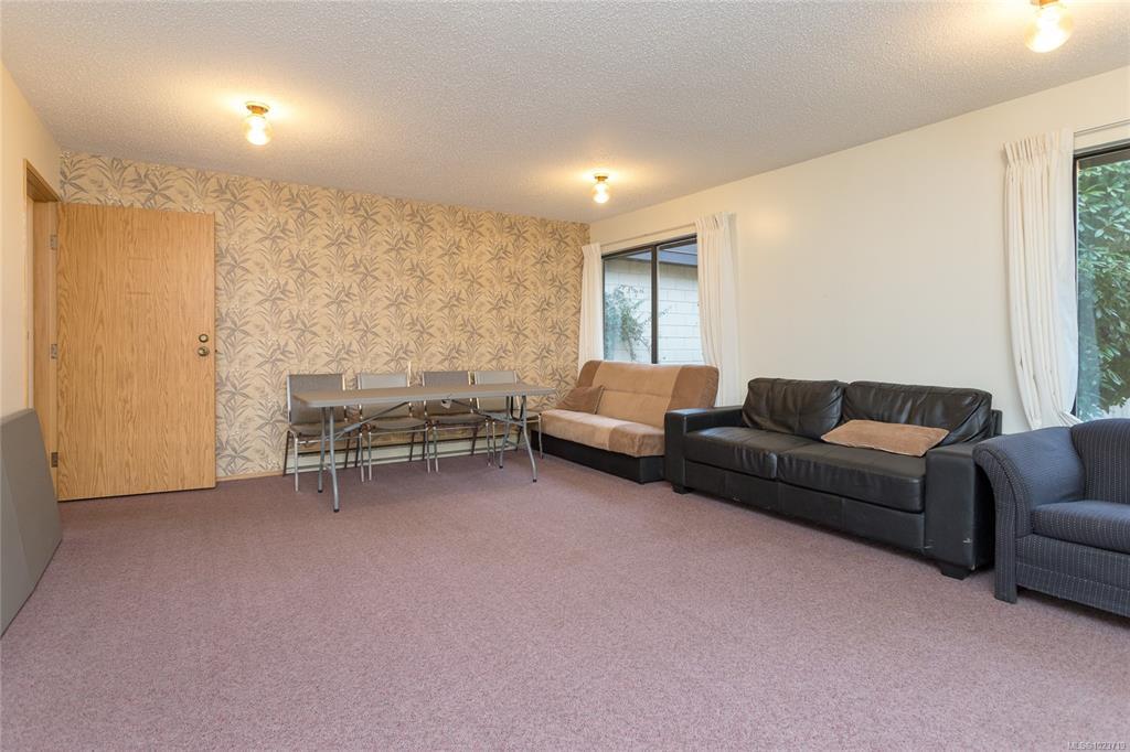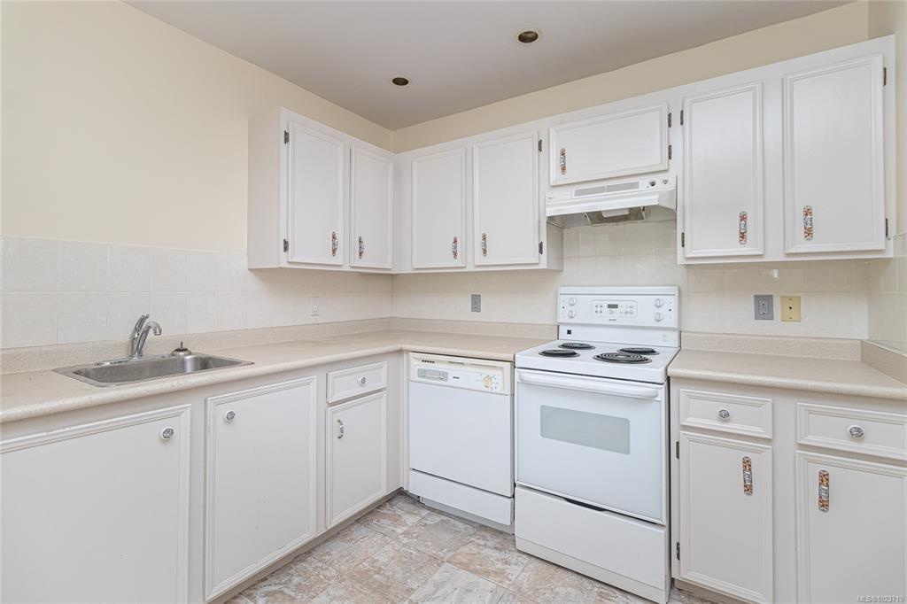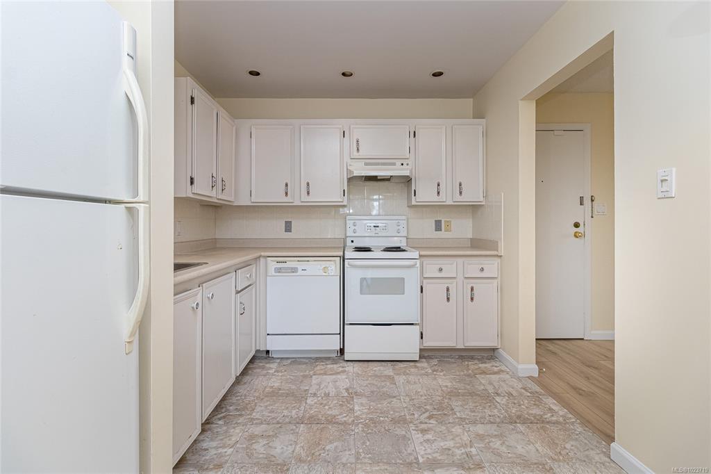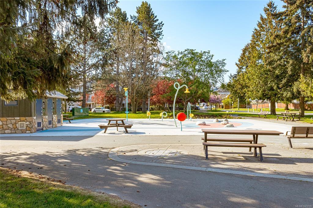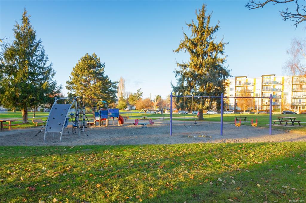 2-level, top-floor corner unit offers the spaciousness & feel of a townhouse w/2 balconies. This family-friendly complext is part of a well-managed strata. Bright spacious living room boasts a vaulted ceiling for an airy feel & a cozy wood-burning fireplace perfect for those cool winter eves. LRG kitchen layout w/eating area.Updates include new flooring, fresh paint throughout, & thermopane windows/doors. Large MSTR BR is located next to the 3 PC BA, & the versatile “dining area” can easily convert into a 3rd BR, complete w/private balcony & closet. Upstairs, the LRG BR features a skylight closet & a 2 PC BA, could be used as a BR, office or family room. Enjoy ample storage space, including a separate storage locker. Bonuses include a common guest suite & free laundry. This centrally located unit is within easy walking of distance of both Mayfair & Uptown malls, & is located on a direct busroute with easy access to UVIC & Camosun College, this one is definitely an ideal location.
