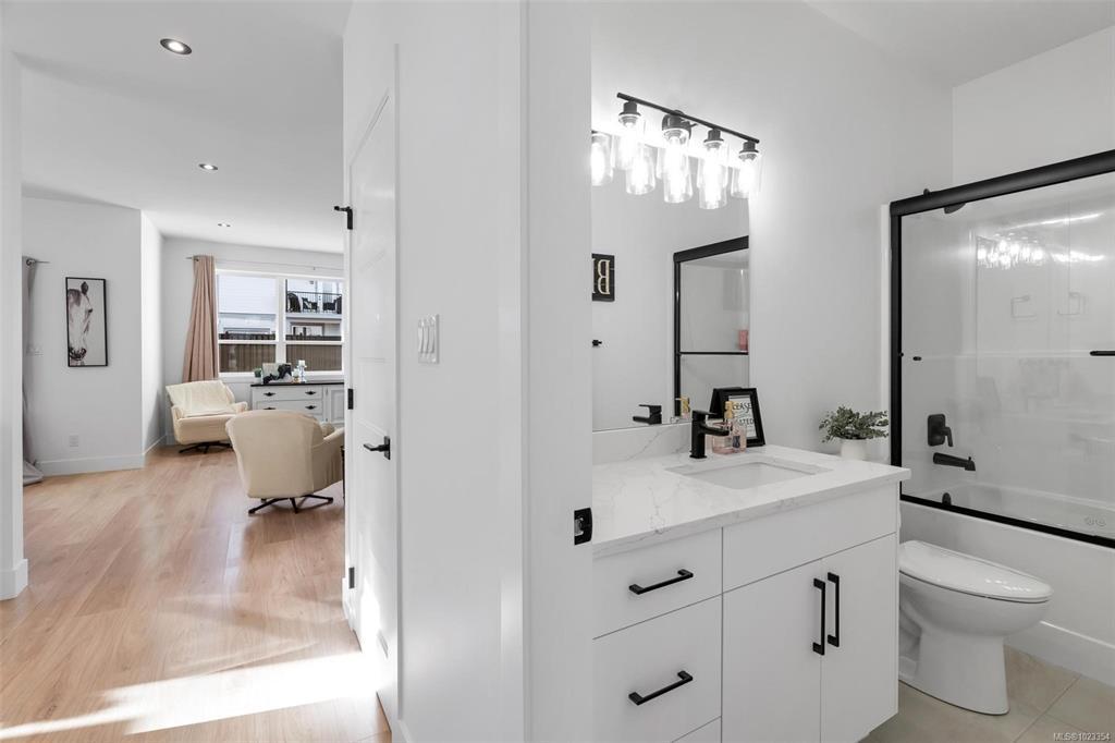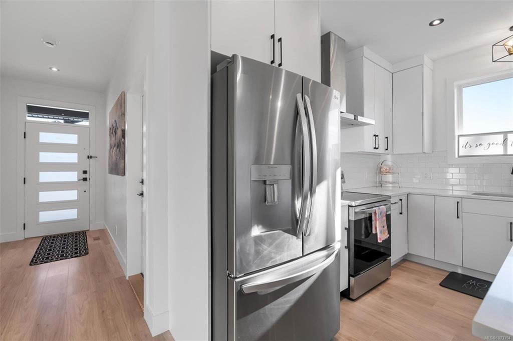 AS NEW, 2025 build, NO GST, quick possession possible. Welcome to this stunning, as new 1730sqft 3 bed 3 bath PLUS den half duplex in Duncan West. Boasting underground services, 9-foot ceilings, an abundance of windows, situated on a corner lot, maximizing your privacy, bright, spacious, perfect for modern living. Kitchen and 3 full bathrooms are outfitted with elegant quartz countertops, complemented by high-end stainless steel appliances for a sleek, contemporary finish. Easy access crawlspace for storage, fully fenced, level, low maintenance rear yard ready for soccer balls, veggie garden, outdoor kitchen, hot tub... Located just steps from the scenic Cowichan Valley Trail, Country Grocer, The Oak Tap House and many other new businesses, ideal for those seeking an active lifestyle with nature at their doorstep.