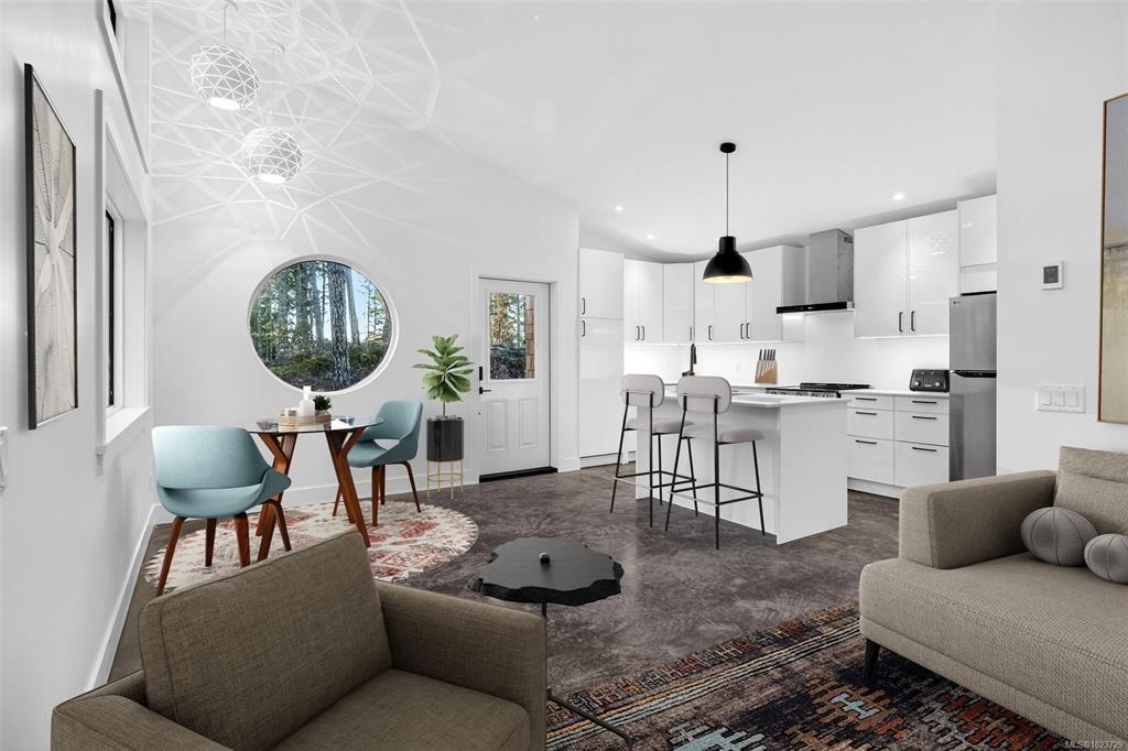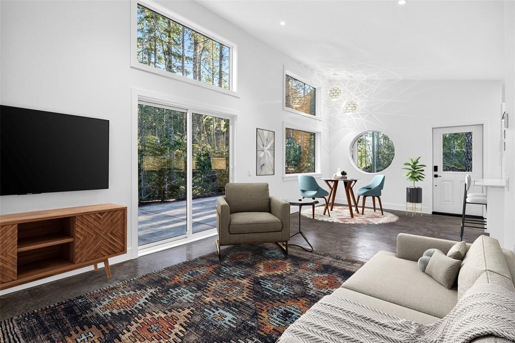 Welcome to this peaceful West Coast modern home set on 2.5 private acres just minutes from Sooke and a short drive to Jordan River’s renowned surf. Surrounded by beaches, trails and Kemp Lake, this location offers endless outdoor enjoyment. The home features a warm West Coast aesthetic with cedar shake exterior, stamped concrete patios, and large windows that frame the natural surroundings. Inside you’ll find 2 bedrooms + an office and 2 bathrooms, including a primary bedroom with ensuite, heated concrete floors, and rough-ins for solar panels and a hot tub. The spacious acreage provides a beautiful natural setting with room for future possibilities to build your dream home or secondary dwelling. Enjoy the tranquility of your secluded patio, mature trees and true West Coast living. Home warranty and connected to CRD water for your convienence. Price plus GST
