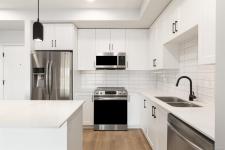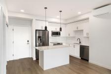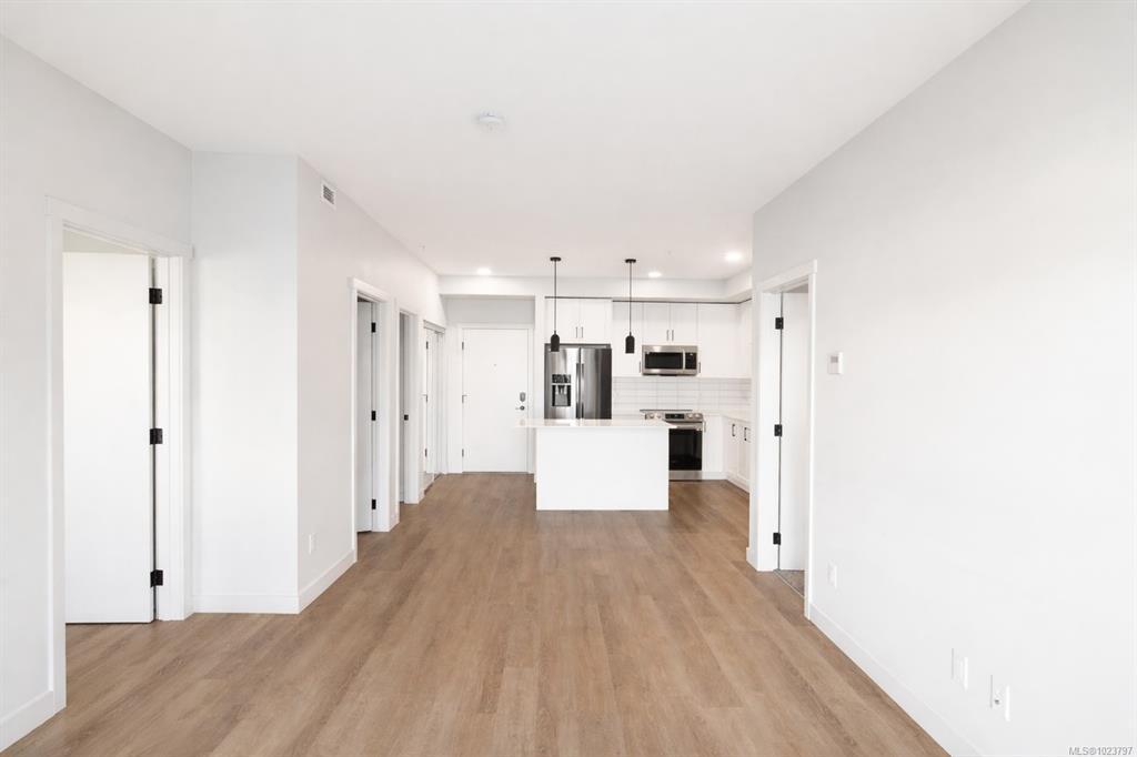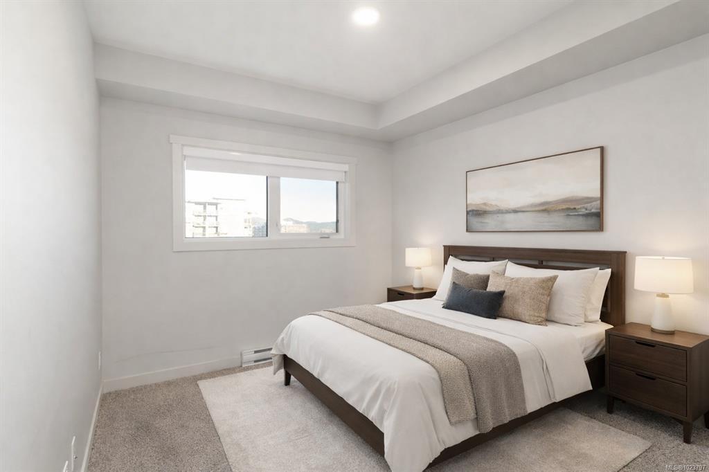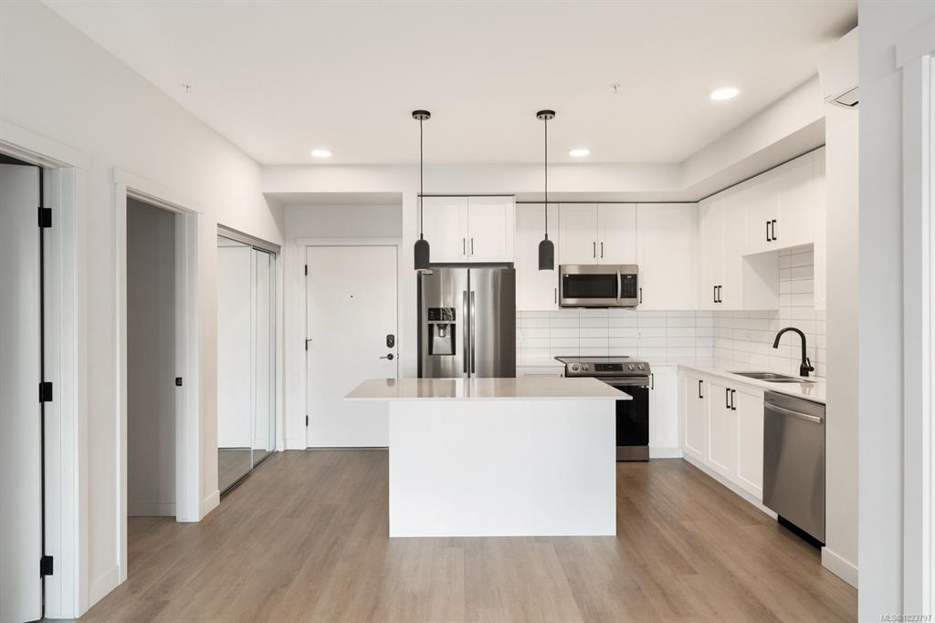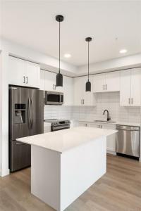 Welcome to Sky Gate—where lifestyle meets convenience. This unit comes with 2 parking spots... This stylish 2 bed/2 bath suite offers a smart, functional layout with great privacy between bedrooms and an open living space that flows to a private balcony. The modern kitchen features a bright white island, stainless steel appliances, and quartz countertops, while the oversized in-suite laundry room adds valuable storage and everyday ease. Enjoy year-round comfort with an energy-efficient heat pump providing both heating and A/C, plus 9’ ceilings and LED lighting throughout. Included are two dedicated parking stalls -one underground and the other is surface parking spot and a secure storage locker. Residents enjoy premium amenities: fitness centre, EV charging, rooftop patio, dog run, gardens, lounge, and bike storage. Walk to shopping, groceries, dining, parks, and trails—this one won’t last!