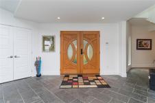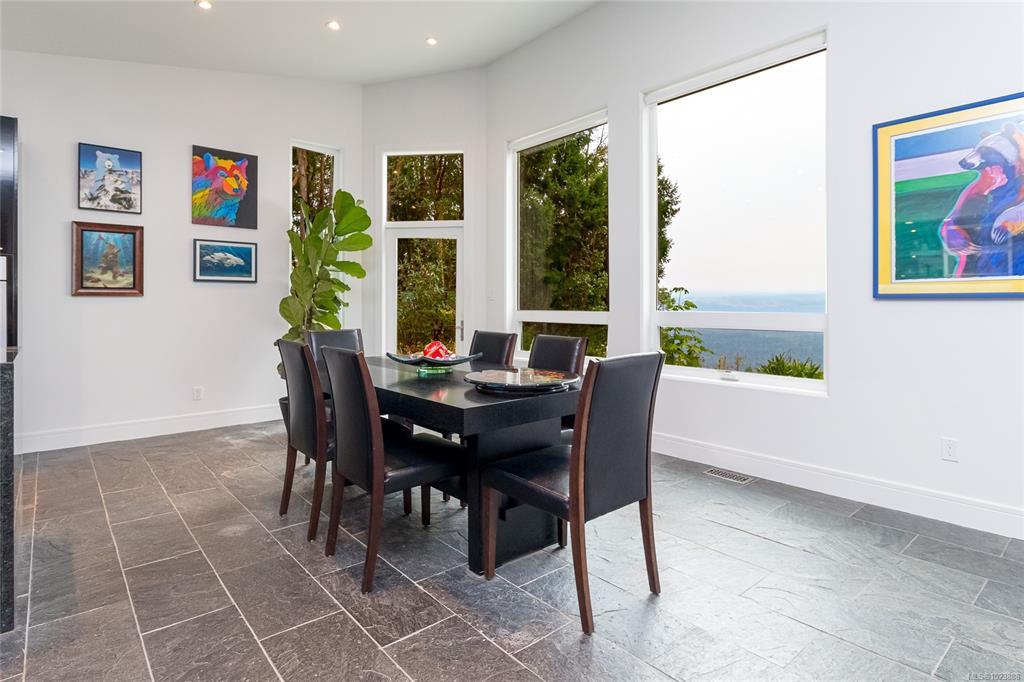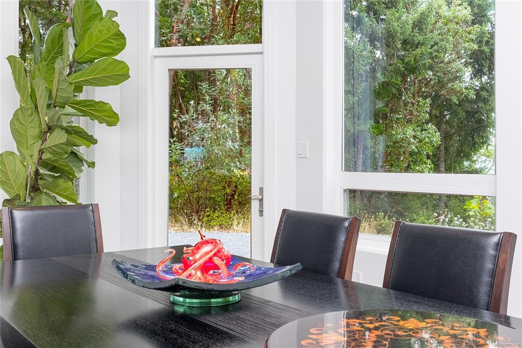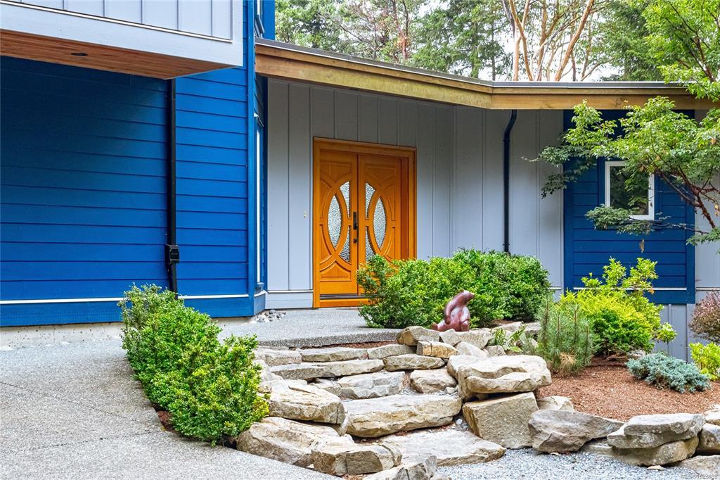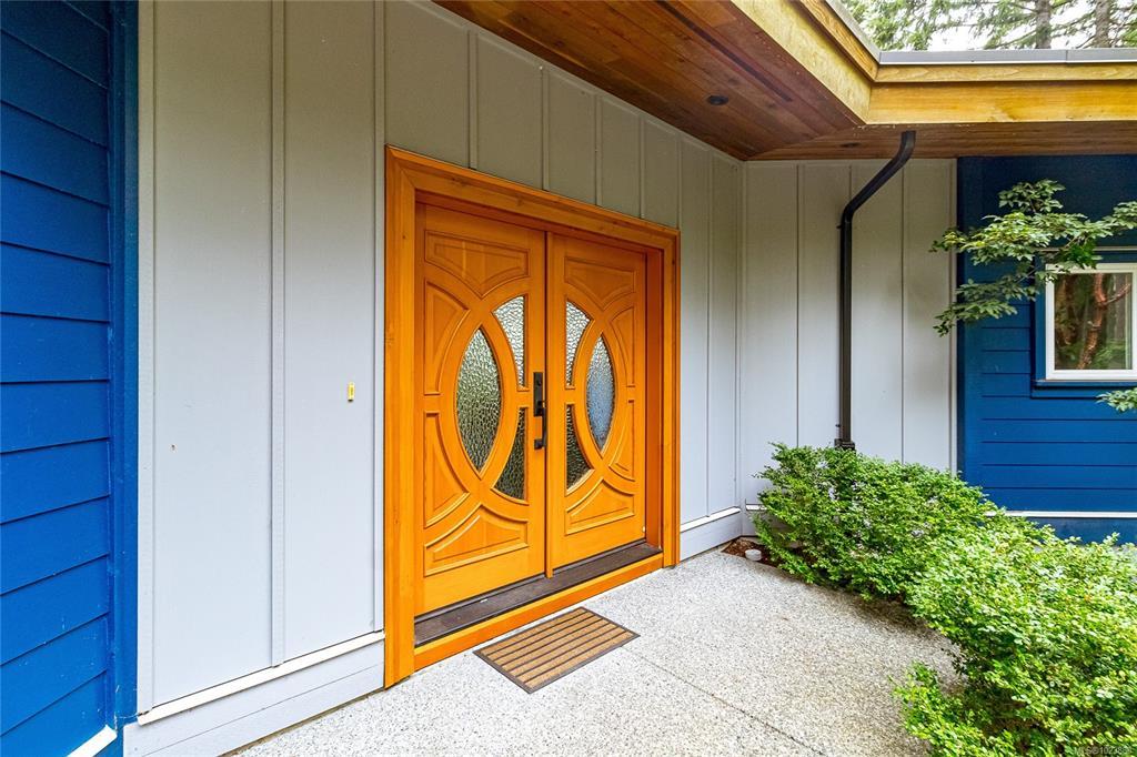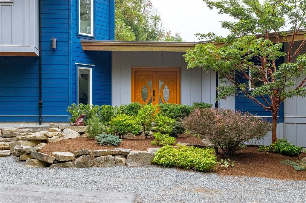 Welcome to this stunning & secluded home nestled in the heart of Aquilla Estates. Surrounded by mature trees & nature w/ breathtaking harbour & mountain views. This 5-acre property offers the perfect balance of peaceful country living & convenient access—just a short drive to both Ladysmith & Nanaimo. This modern custom home features a smart layout designed for easy main-level living. The spacious primary suite & a 2nd bedroom are on the main floor, while a third bedroom w/ ensuite & a private deck is located upstairs—ideal for guests or a family room. Enjoy cinematic experiences in the soundproof, high-end media room. Step outside of the main living area to a natural, low-maintenance yard & take in the tranquil setting—perfect for your morning coffee or evening unwinding. Additional features include a large laundry room w/ built-in dog wash, & a full-height walk-in crawl space offering extensive storage. A rare opportunity to embrace the best of West Coast living in comfort & privacy.