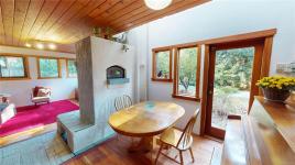 Opportunity to acquire 2 titled parcels totaling .86 acres close to walk-on beach, ferry and shopping. The primary parcel features a 1057 sq ft two level home with large bedroom, small office and 1.5 bathrooms. Sunny and bright in the front with a park-like private backyard. Kitchen requires carpentry to finish storage and some trim needs to be completed throughout the home. Sloping trails meander between tall trees and boulders up to multiple upper landings. Energy efficiency features include passive solar design, Temp-cast Masonry Heater, and newly installed hot water on-demand system. Well consistently provided clean plentiful water for family of 5. Septic system updated in 2025. Empty lot is zoned for primary residence and 3 outbuildings. Development includes cement water storage tank for rain collection or pump and haul water storage, and stone stairway into lot. A home and investment property in one purchase.