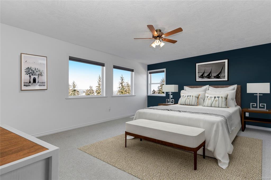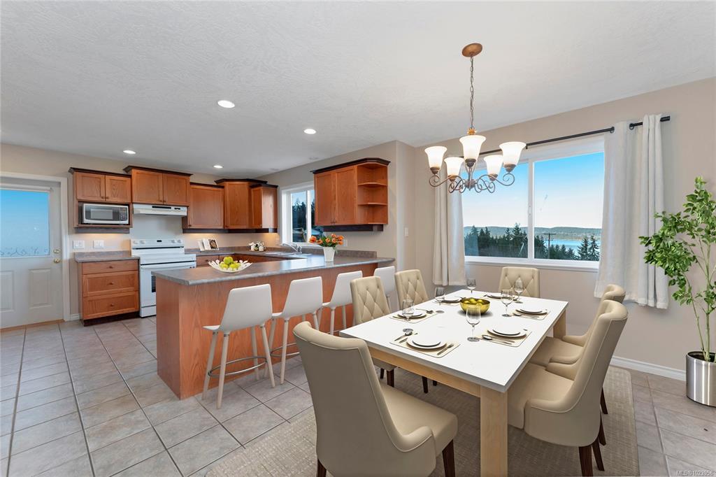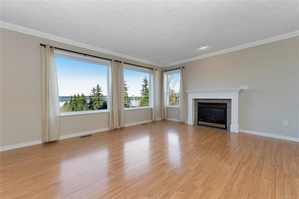OPEN HOUSE: January 25 11-1. Wake up to sweeping ocean, island, and mountain views in this 4-bed, 4-bath home tucked on a quiet cul-de-sac in one of Ladysmith’s most secure and family-friendly neighbourhoods. From the bright, open-concept main floor, the kitchen flows onto a spacious deck with gas BBQ hookup—ideal for summer evenings and weekend brunches. Upstairs, the generous primary suite features a walk-in closet, soaker tub, and walk-in shower, while two additional bedrooms and laundry offer everyday convenience. Downstairs, the walkout basement adds rec and family rooms plus in-law suite potential with plumbing in place—perfect for growing families or multigenerational living. A main-level office, double garage, and a level, landscaped yard complete the picture. Close to beaches, trails, and schools, this home quietly offers the space, security, and views many wait years to find.