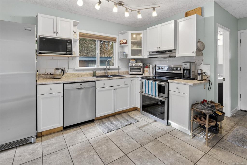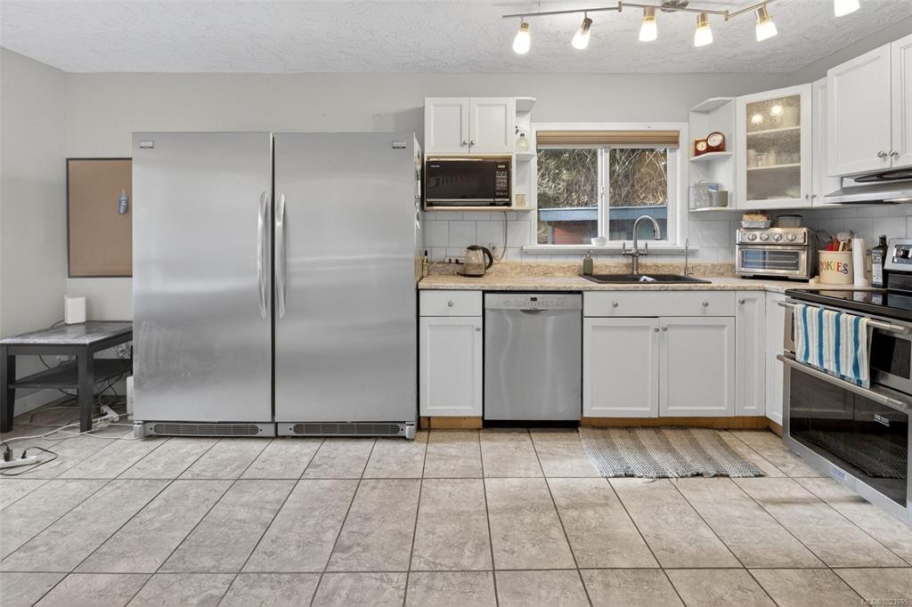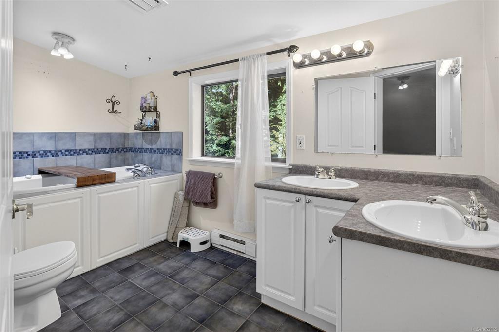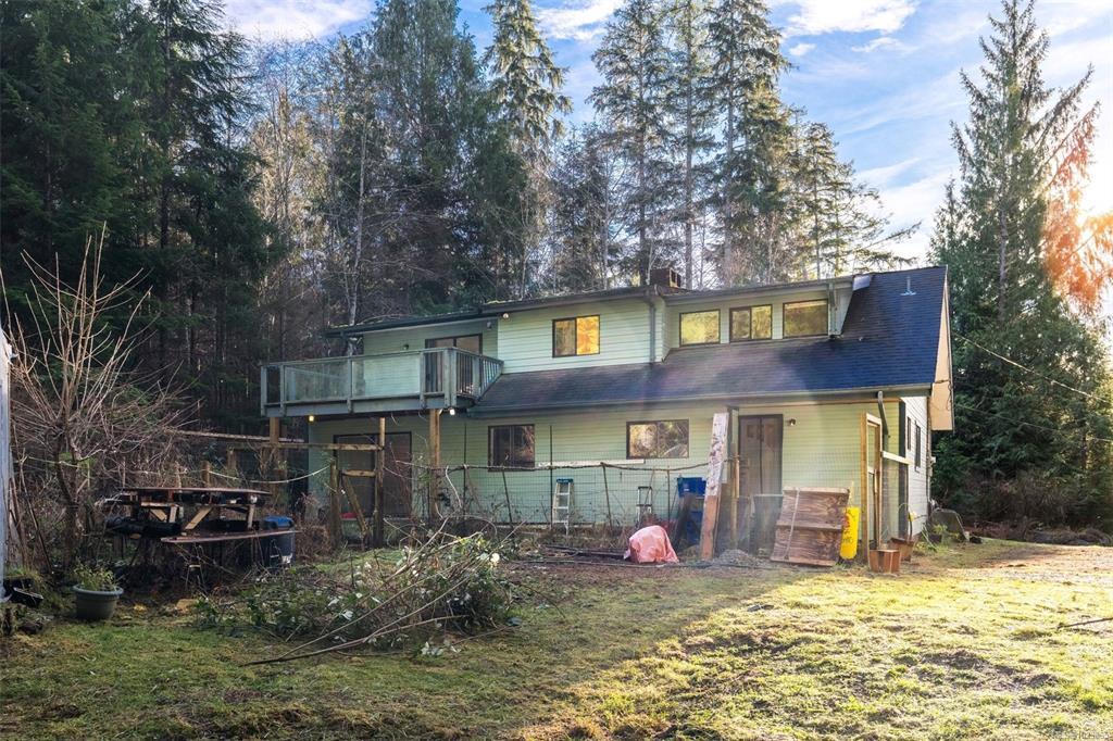 20 Minutes west of Sooke siting on a pretty & private lot! This 2027 sq ft 3 bedroom 2 bath home needs paint & flooring-windows are original-roof is older. Very unique home on a magical .97 of an acre-just waiting for some cosmetic updates. Kitchen has higher end appliances...many rooms w/ custom blinds. Main level has living rm w/ wood fireplace, dining area, nice sized eat in kitchen, large utility/laundry area (perfect for pets, crafts or a place to store your canning), 4 piece bath & 1 bedroom-great for guests. Upstairs are 2 bedrooms plus family/loft area. Primary has sliders to deck, ensuite w/ jetted (8) tub & a woodburning fireplace. The yard was once very loved. Fenced veggie garden, greenhouse, dog run & seasonal stream-very private. Bring your sweat equity & this country family home could be perfect for you! RV on property pays pad fee. Easy walk to French Beach & Stoked Pizza. Shirley Delicious is a 5 minute drive away. Many provincial beaches, surfing & trails close by.
