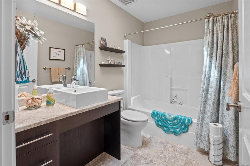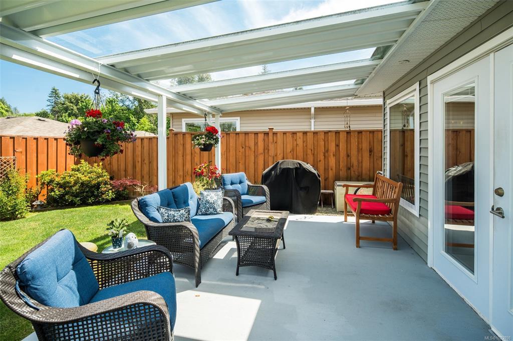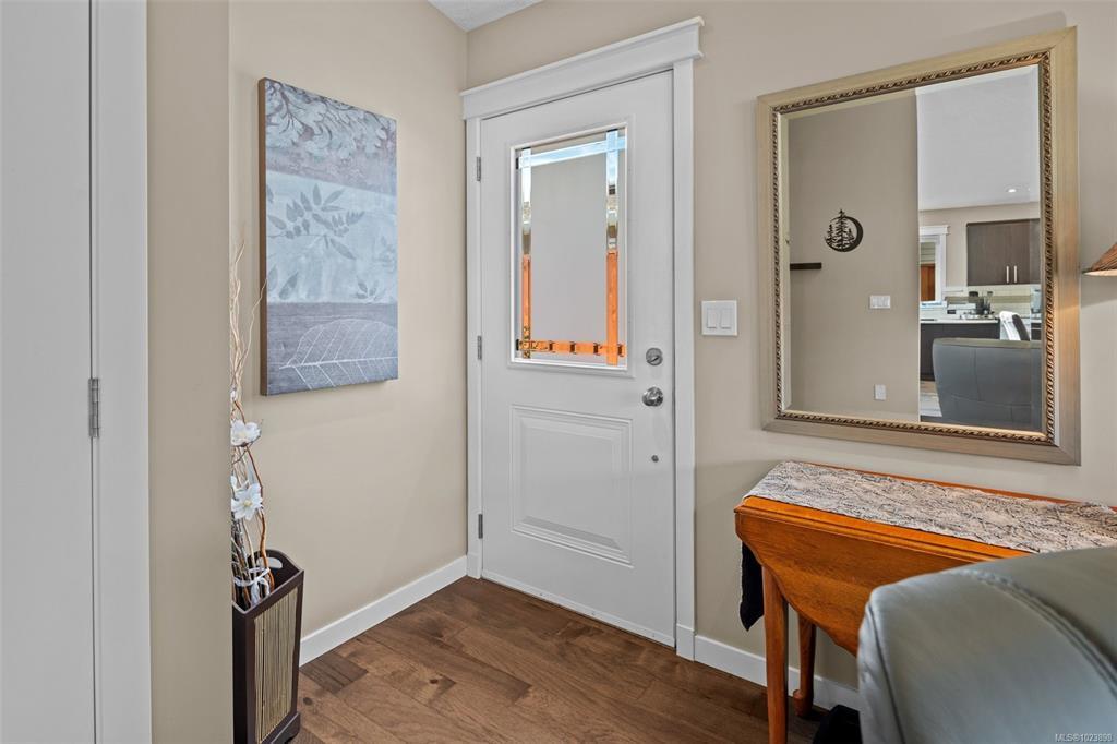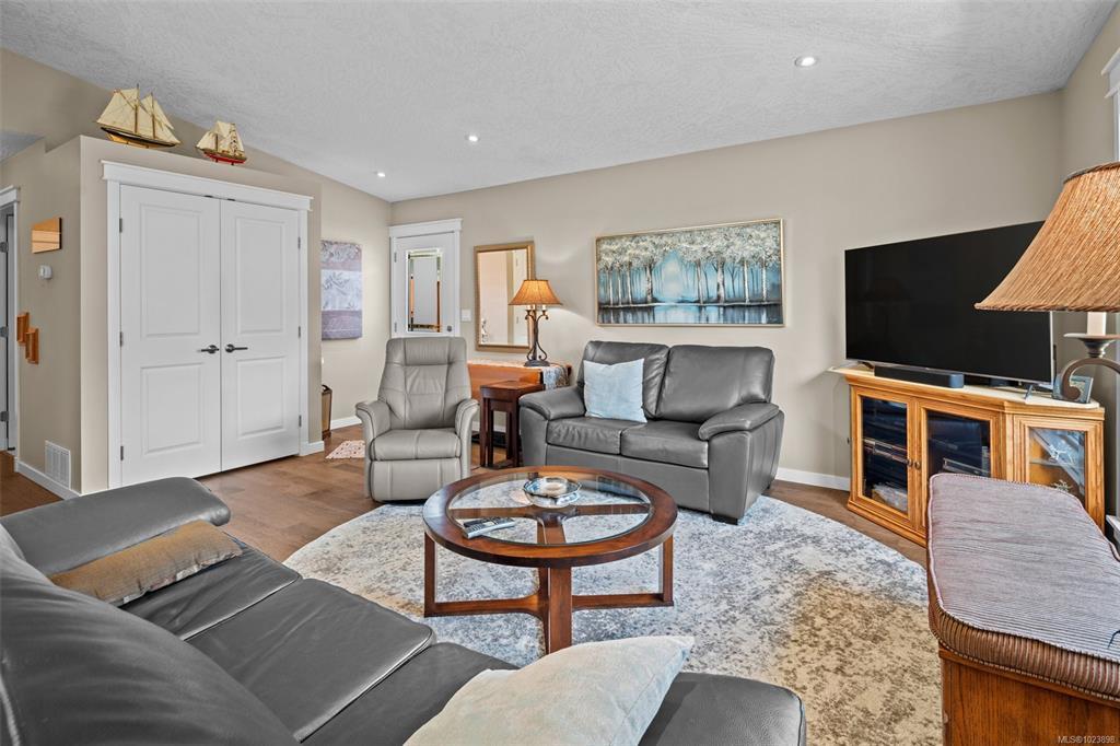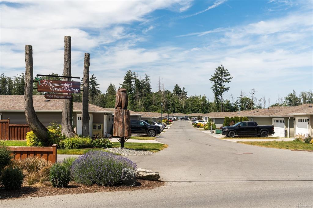 Discover Hummingbird Green Village, an exclusive haven for those who value beauty, serenity, and discretion.This 2-bedroom, 2-bathroom home blends modern elegance with practical design.The open-concept layout features an accent wall suited for your finest pieces. Lush greenery complements the impeccably maintained lawn, cared for with the owner’s golf-honed patience and precision. Wider doorways, a flush entrance, and an accessible ensuite shower ensure ease of mobility, rare in this complex. The kitchen offers sleek countertops, premium appliances, and generous storage. Engineered hardwood flooring, vaulted ceilings, architrave moulding, and staircase-style wiring elevate the home’s efficiency and style. The covered patio leads to a secluded backyard, naturally screened for privacy and free from prying eyes. Minutes from BC Ferries, the airport, the beach by the Sidney Pier, and a direct highway to downtown Victoria, travel is effortless. Claim your place at Hummingbird Green Village.