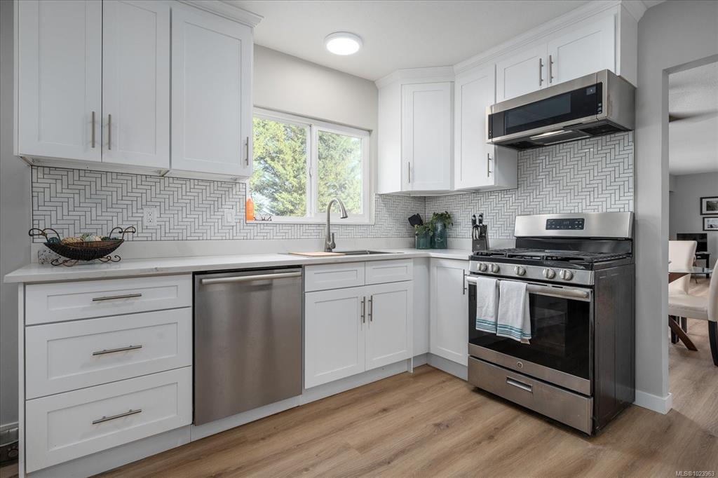 Discover your dream home, a perfect blend of quality and coastal charm in the heart of Ladysmith. This inviting residence features a level entry adorned with a soft, neutral palette that embodies modern elegance.The spacious livingroom,highlighted by large picture windows, allows you to bask in wide-open views, while the adjoining dining area seamlessly leads to an expansive deck, perfect for savoring morning sunrises.The contemporary kitchen boasts solid maple cabinetry and luxurious quartz countertops, making it a culinary delight. Retreat to the primary bedroom complete with an ensuite bathroom and a walk-in closet, plus two additional well-appointed bedrooms and a 4-piece bath. The fully finished lower level, completed in 2020, is ideal for extended family or guests. A cozy sitting room that flows into a generous kitchen, quartz counters, along with two additional bedrooms and a 4-piece bath. Set on a large fenced lot, this home making it perfect for a growing family.