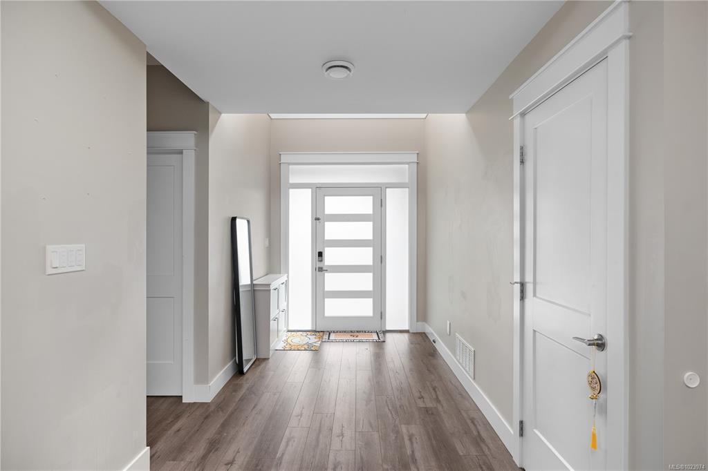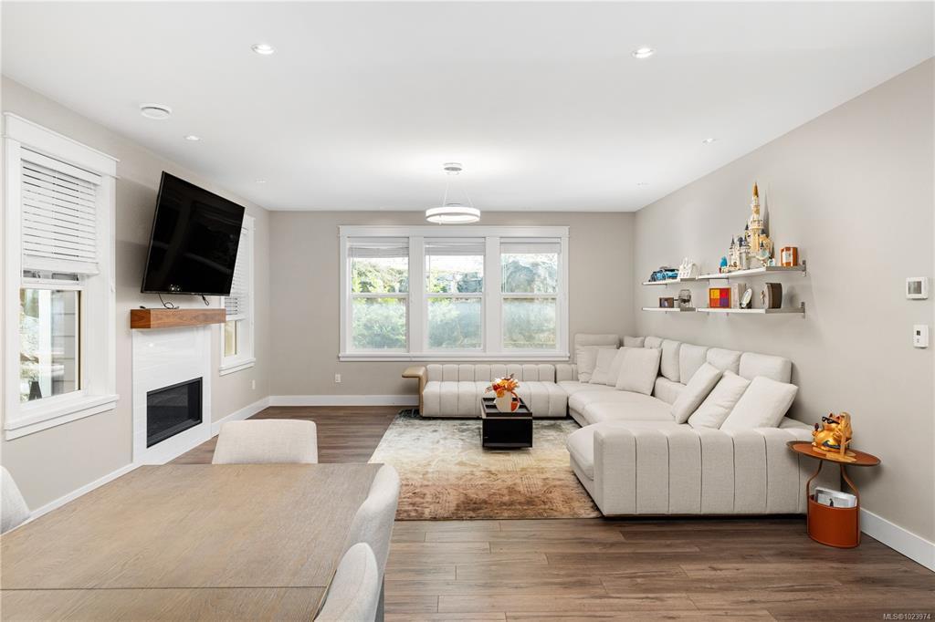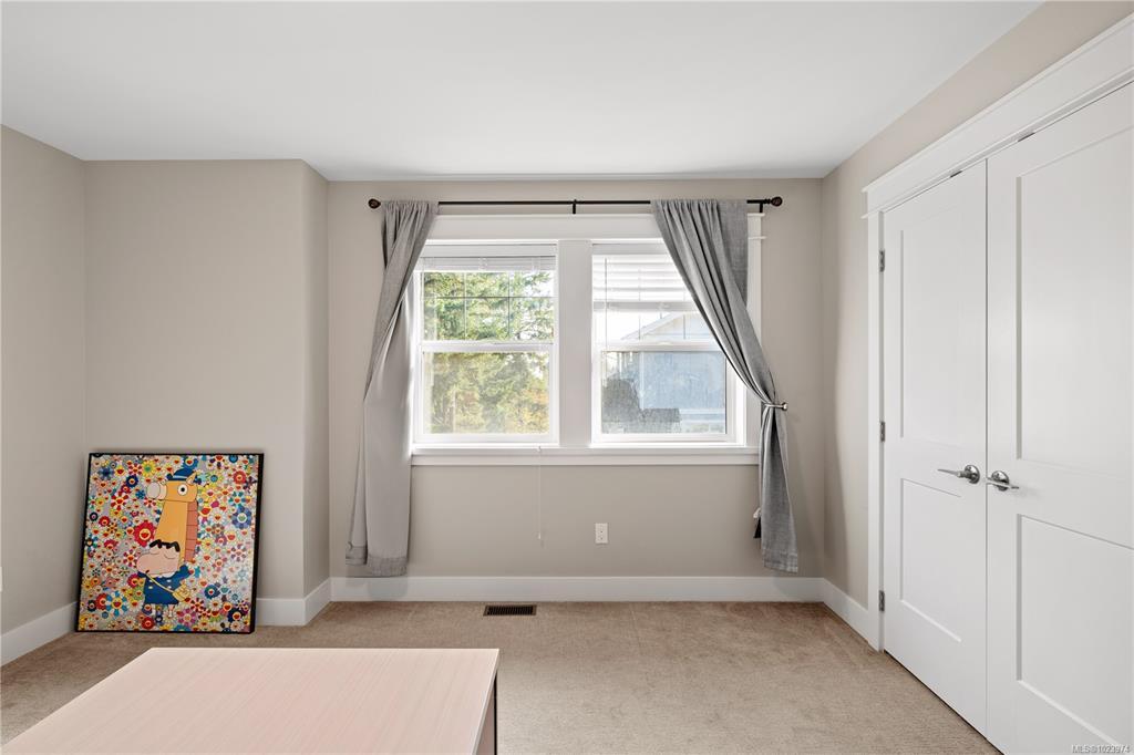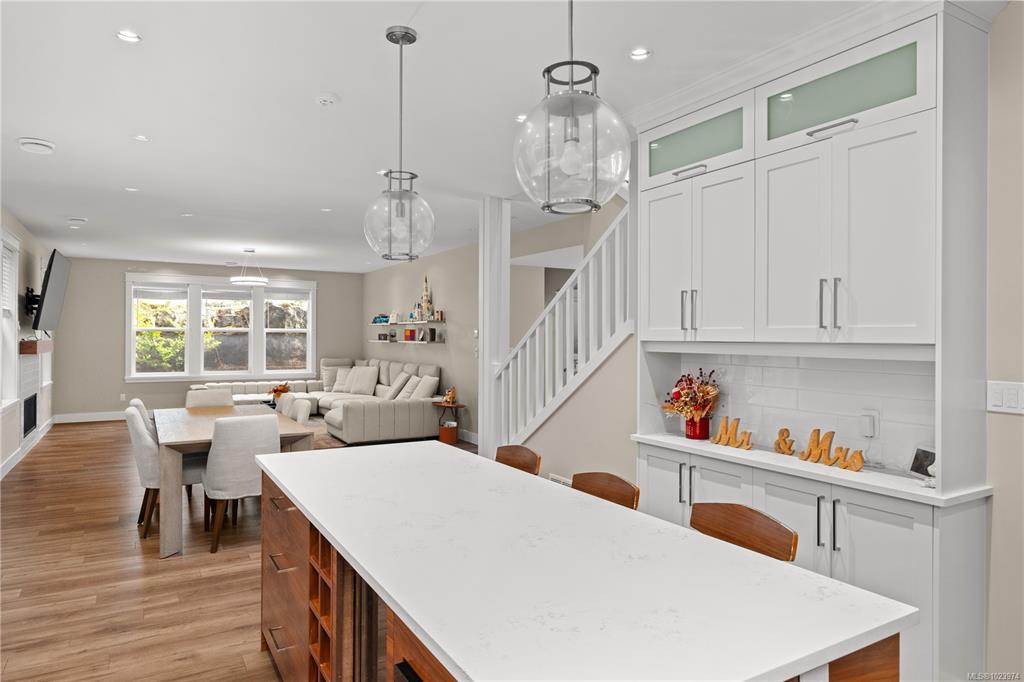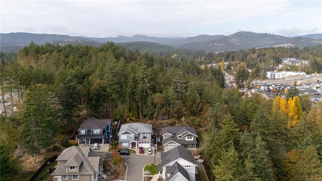 Tucked away in the quiet and sought-after Olympic Ridge community, this elegant 3-bedroom, 3-bath home with a large den blends modern design with everyday comfort. Perfectly positioned at the end of a peaceful street, it is minutes from Royal Bay Secondary, Red Barn Market, scenic parks, Olympic View Golf Course, and public transit, with Starbucks, shops, and conveniences just a short drive away. The main level welcomes you with 9-foot ceilings and a bright open-concept living, dining, and kitchen area designed for relaxed family living or effortless entertaining. The gourmet kitchen showcases stainless steel appliances, quartz countertops, and an extended island for casual gatherings. Upstairs, the primary suite features French doors, a spa-inspired ensuite, and a spacious walk-in closet. Two additional bedrooms share a stylish 5-piece bath. Enjoy the serene mountain and forest views from the elevated setting, offering a tranquil retreat to relax and unwind.
